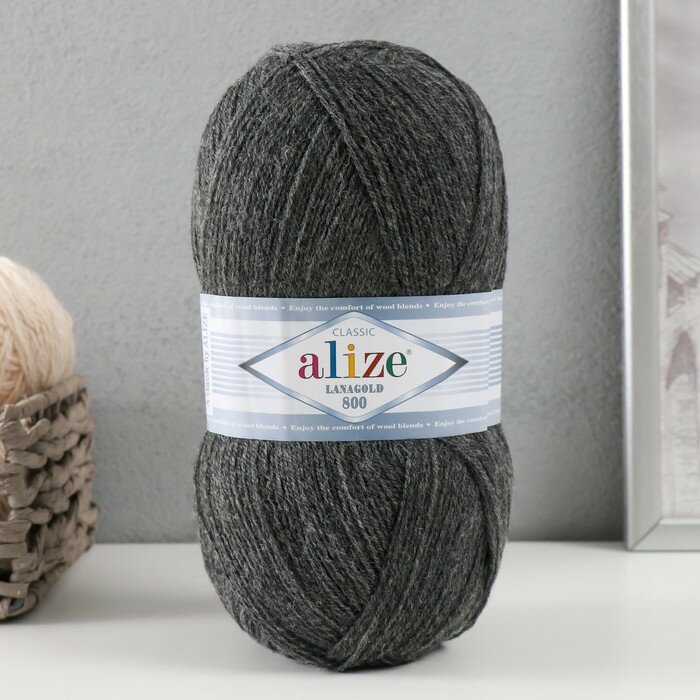 Пряжа Alize Lanagold 800 (Ланаголд 800) - 1 моток Цвет: 348 темно-серый 49% шерсть, 51% акрил 100г 730м