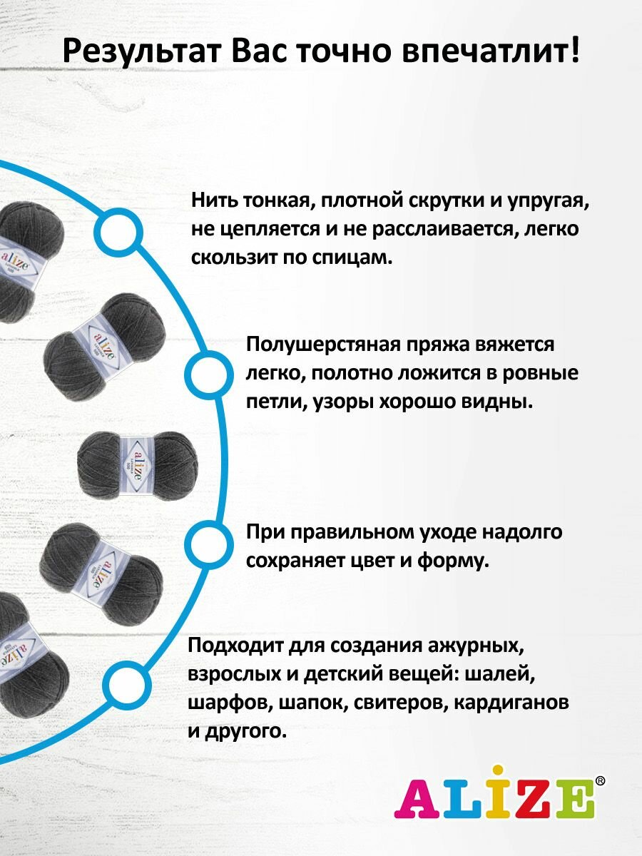 СохранитьПряжа для вязания ALIZE 'Lanagold 800', 100г, 730м (49% шерсть, 51% акрил) (182 средне-серый меланж), 5 мотков интересное:
