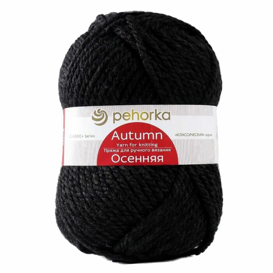 Пряжа Пехорка Осенняя черный (002), 25%шерсть/75%акрил, 150м, 200г, 1шт