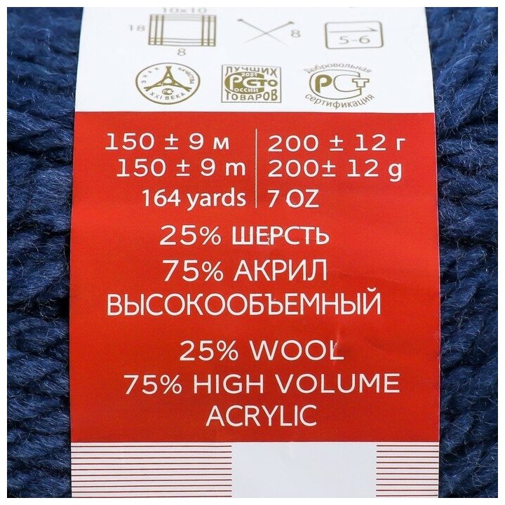 Пряжа для вязания Пехорка 'Осенняя' 200г, 150м (25% шерсть, 75% акрил) (04 темно-синий), 5 мотков