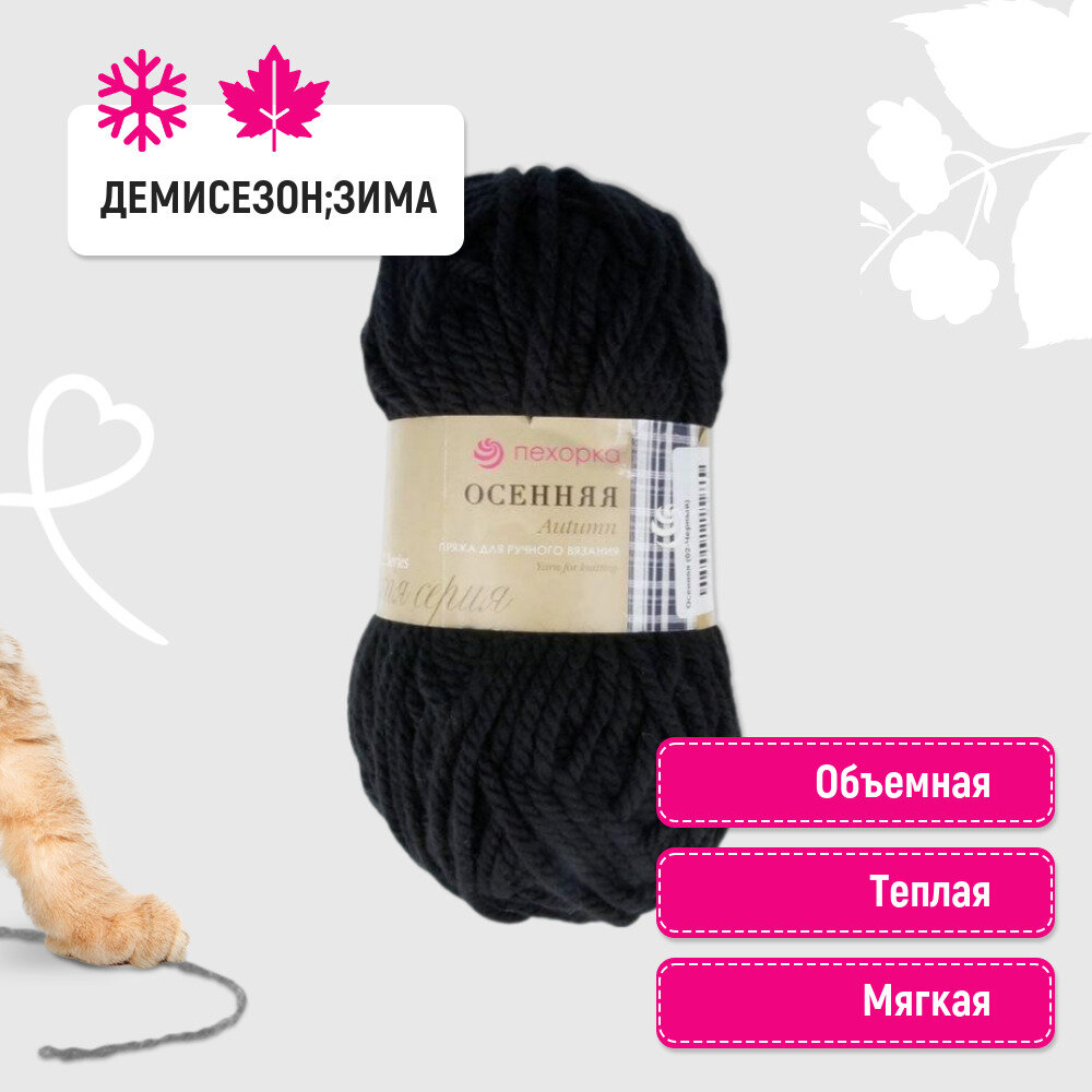 СохранитьПряжа для вязания Пехорка 'Осенняя', 200г, 150м (25% шерсть, 75% акрил) (02 чёрный), 5 мотков интересное: