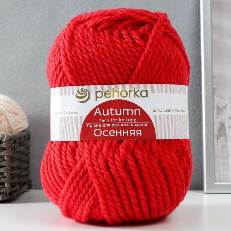 Купить Пряжа Пехорка Осенняя красный мак (088), 25%шерсть/75%акрил, 150м, 200г, 1шт