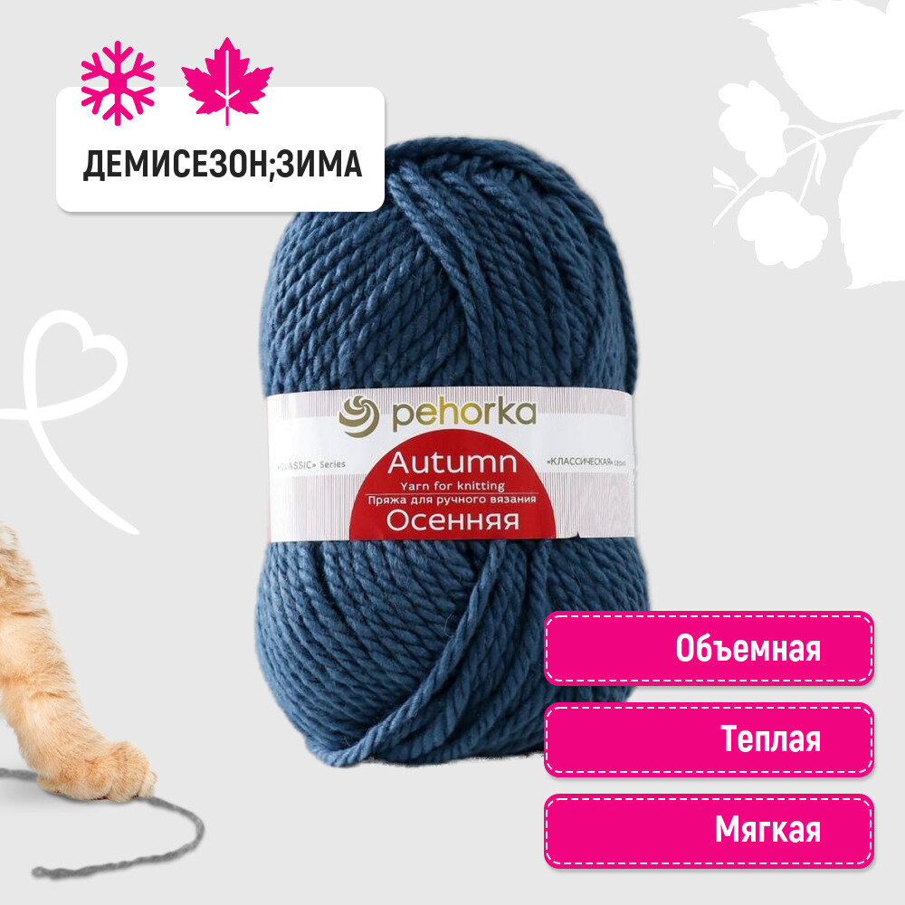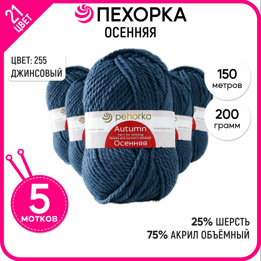 Пряжа Пехорка "Осенняя", 200 гр 150 м, 25% шерсть, 75% акрил, 255 джинсовый, 5 шт