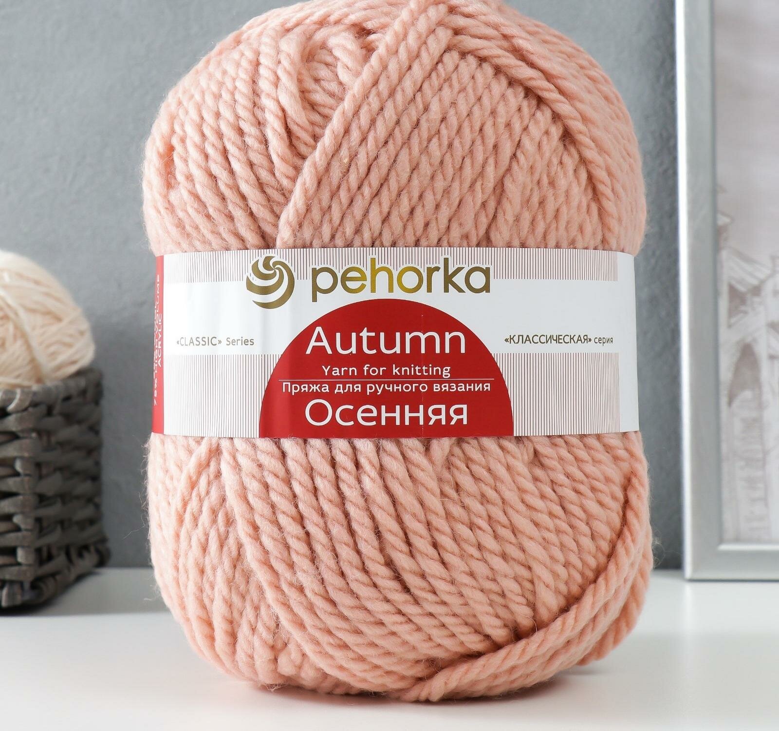 Пряжа для вязания Пехорка 'Осенняя' 200г, 150м (25% шерсть, 75% акрил) (68 чайная роза), 5 мотков