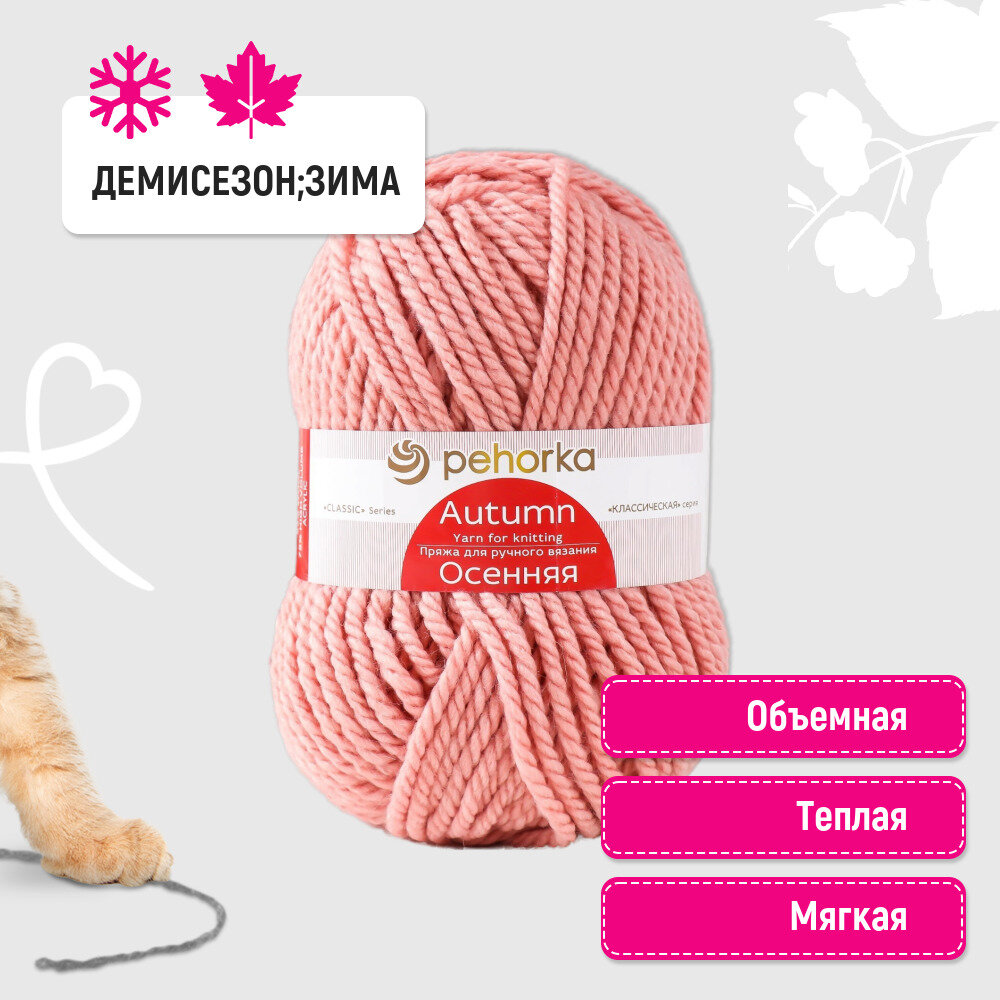 Пряжа Пехорка Осенняя коралл (058), 25%шерсть/75%акрил, 150м, 200г, 1шт