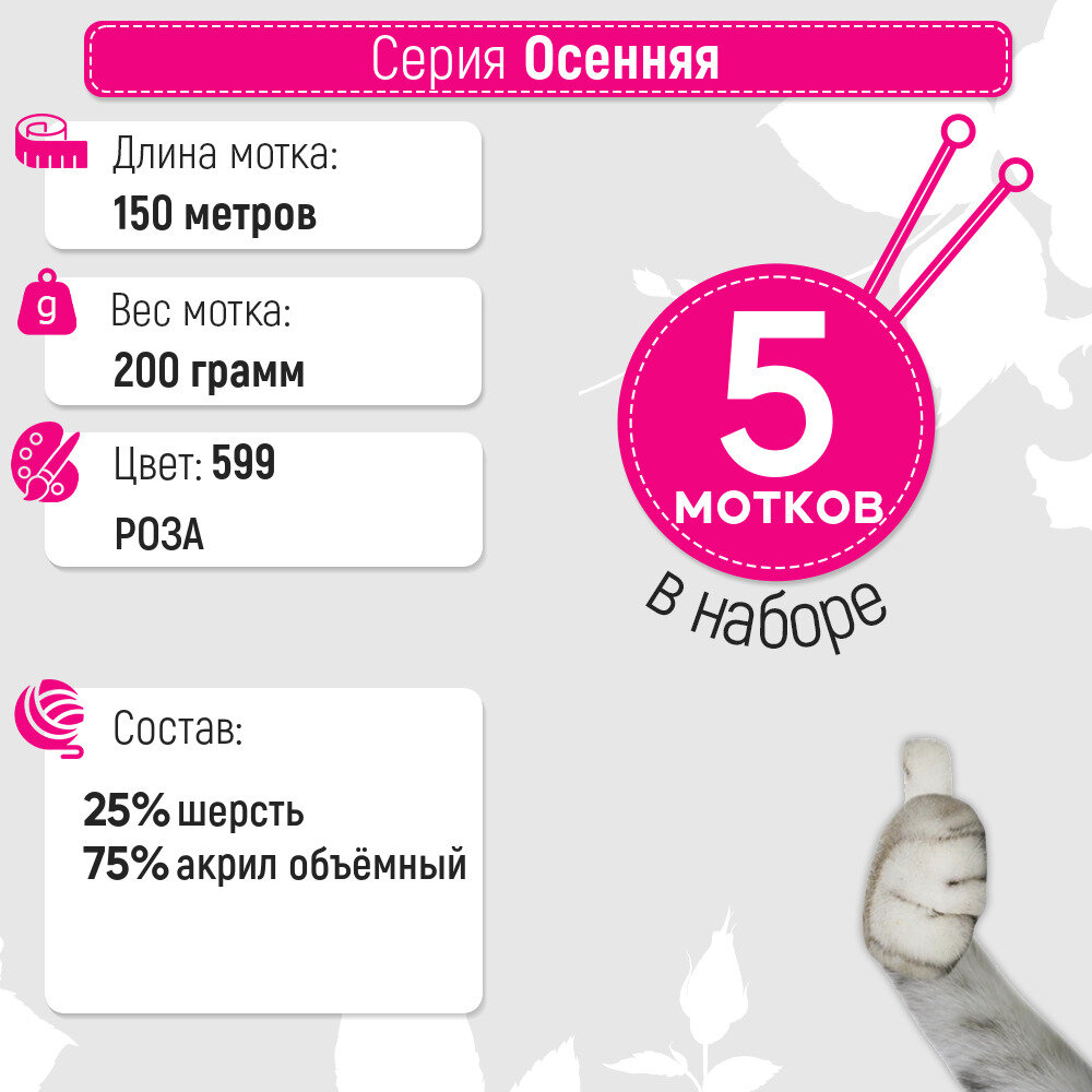 Пряжа Пехорка Осенняя цвет 439 малиновый (200г/150м, упаковка 5 мотков)