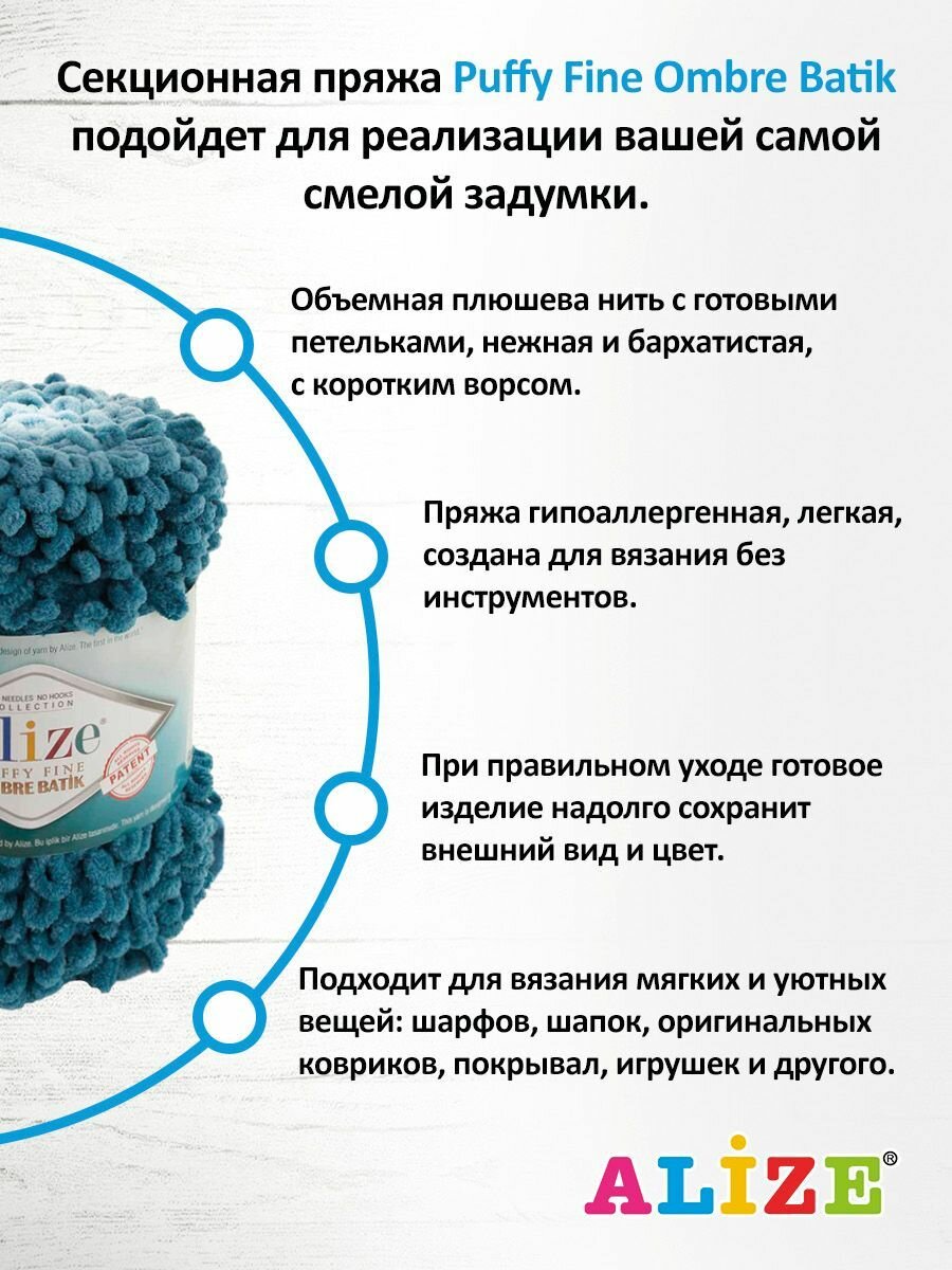 СохранитьПряжа для вязания Alize Puffy Fine Ombre Batik 7263, 500 г, 73 м, 1 штука интересное:
