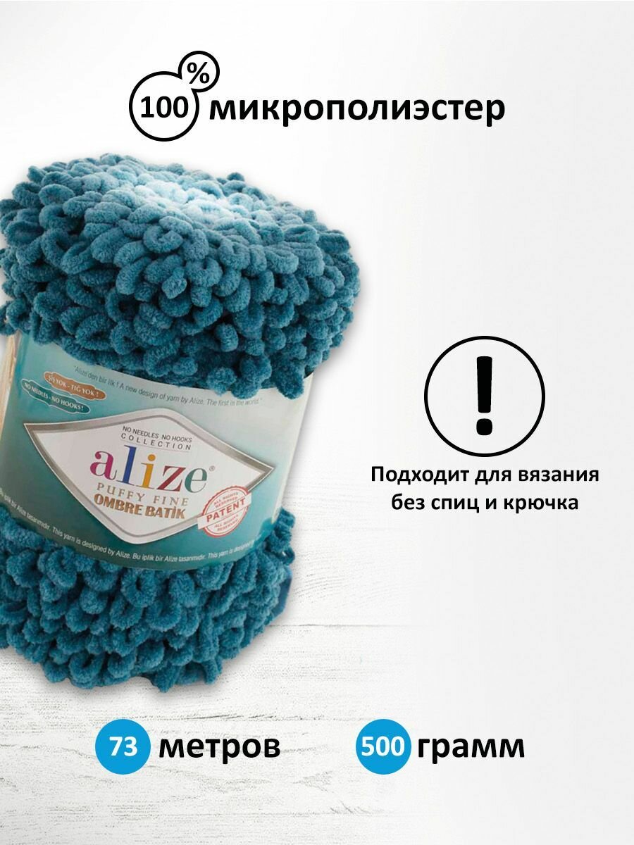 Пряжа для вязания Alize Puffy Fine Ombre Batik 7280, 500 г, 73 м, 1 штука