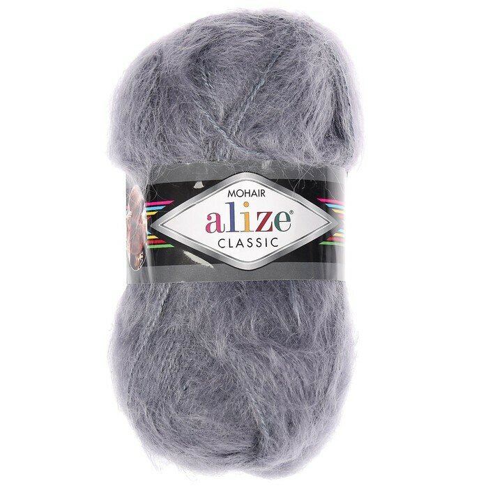 Купить Пряжа Alize Mohair Classic угольный серый (87), 24%шерсть/25%мохер/51%акрил, 200м, 100г, 1шт