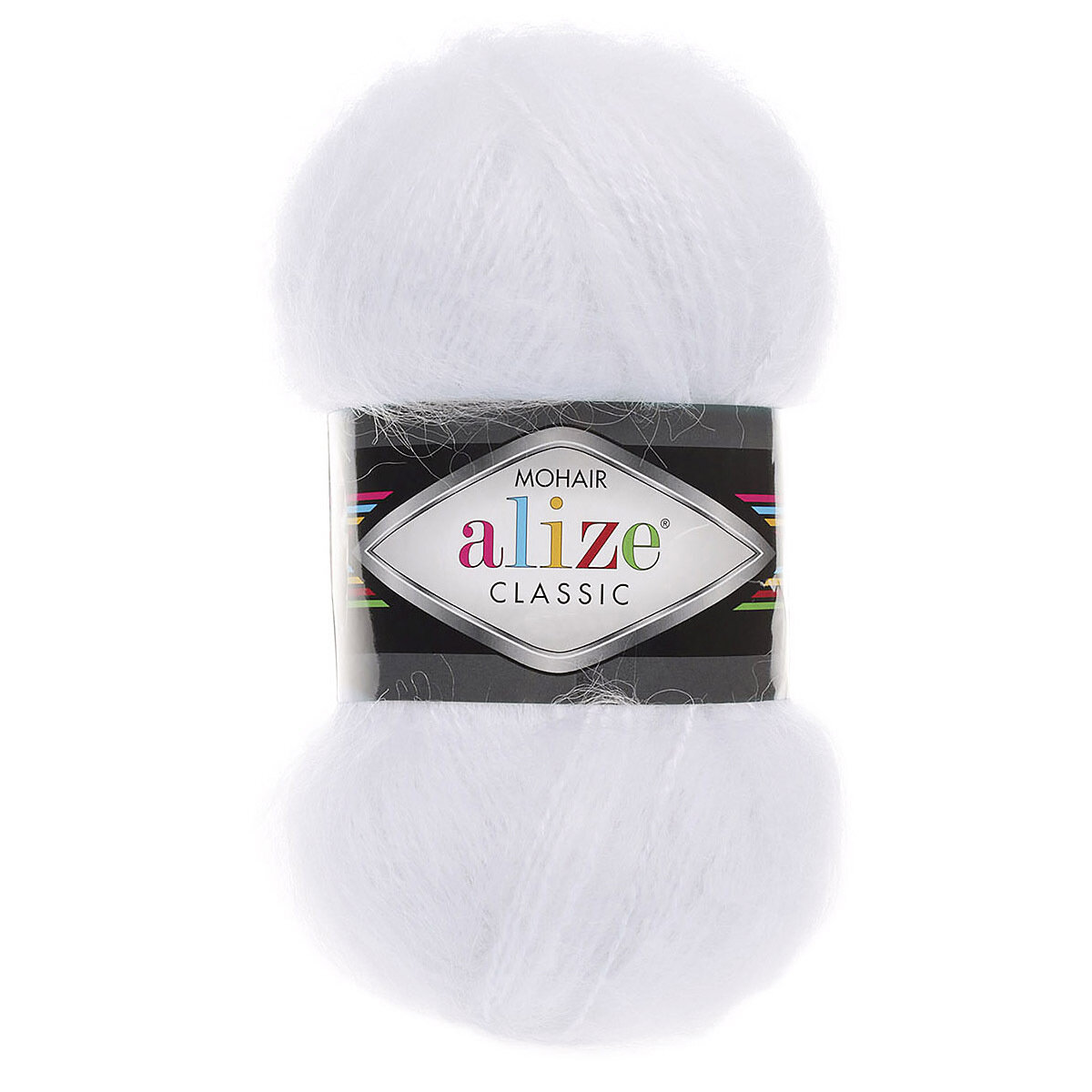 Купить Пряжа Alize Mohair Classic белый (55), 24%шерсть/25%мохер/51%акрил, 200м, 100г, 5шт