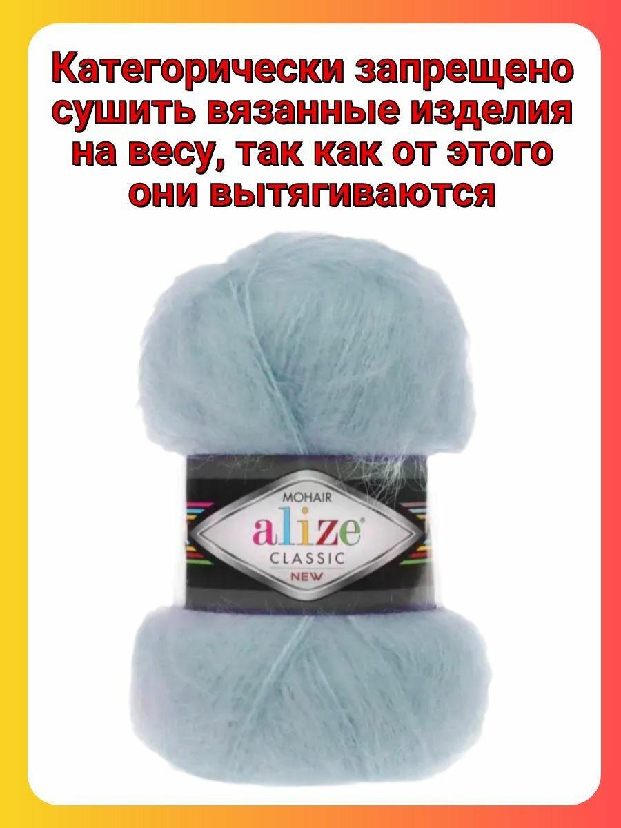 Пряжа для вязания Alize Mohair Classic New, цвет 40 голубой, 100г, 200м, 5шт/упак