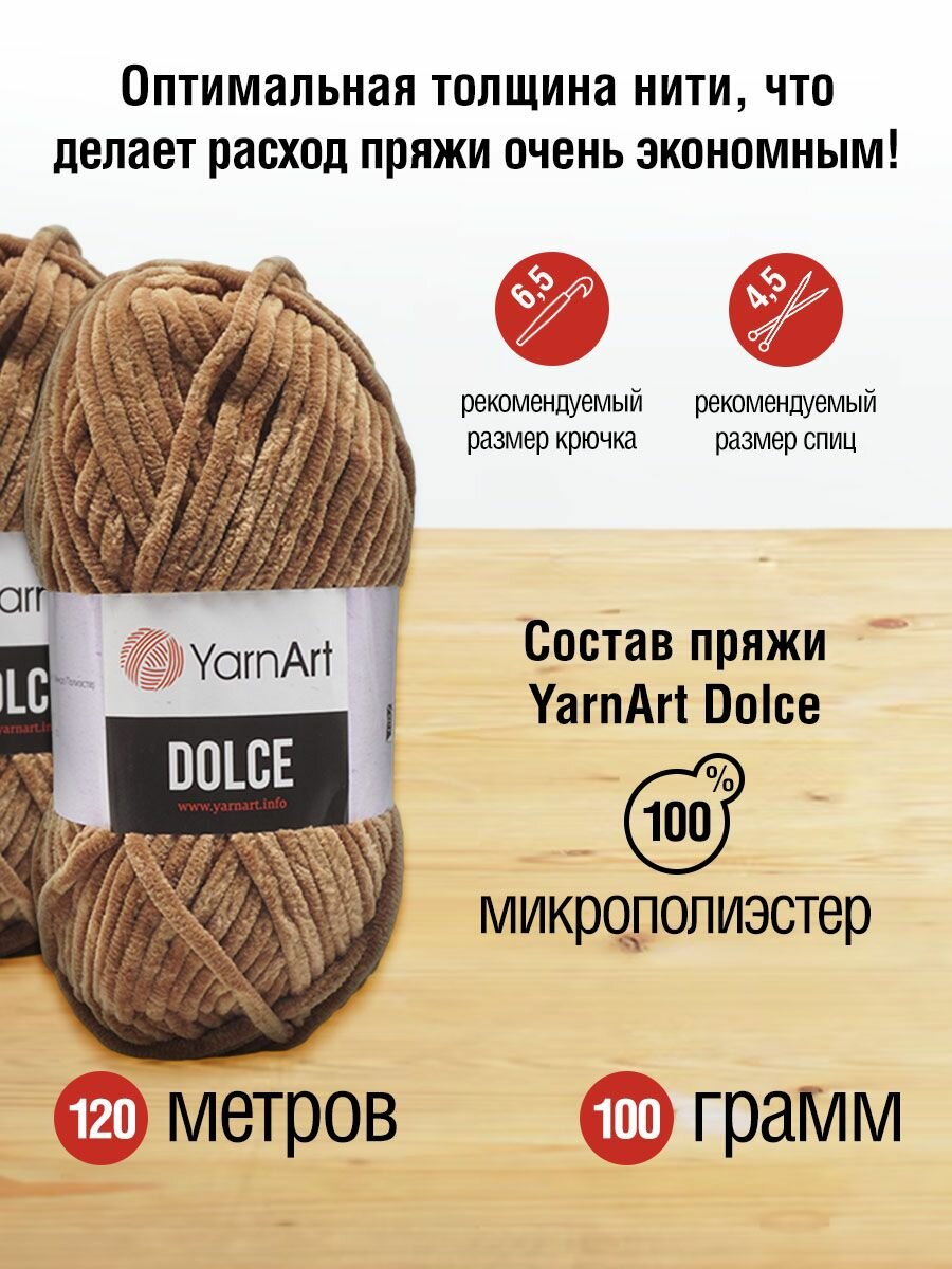 Пряжа для вязания YarnArt 'Dolce' 100г, 120м (100% микрополиэстер) (765 светло-коричневый), 5 мотков