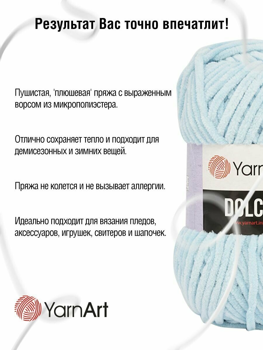 Плюшевая пряжа YarnArt Dolce (Дольче) - 1 моток 777 голубой, для вязания игрушек, 100% микрополиэстер 120м/100г