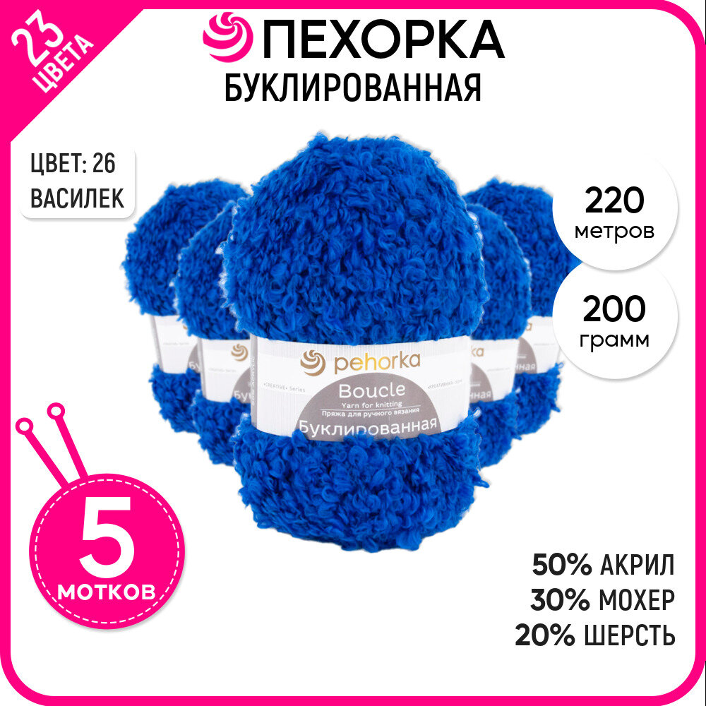 Пряжа Пехорка Буклированная (26), василек, 5 шт. по 200 г