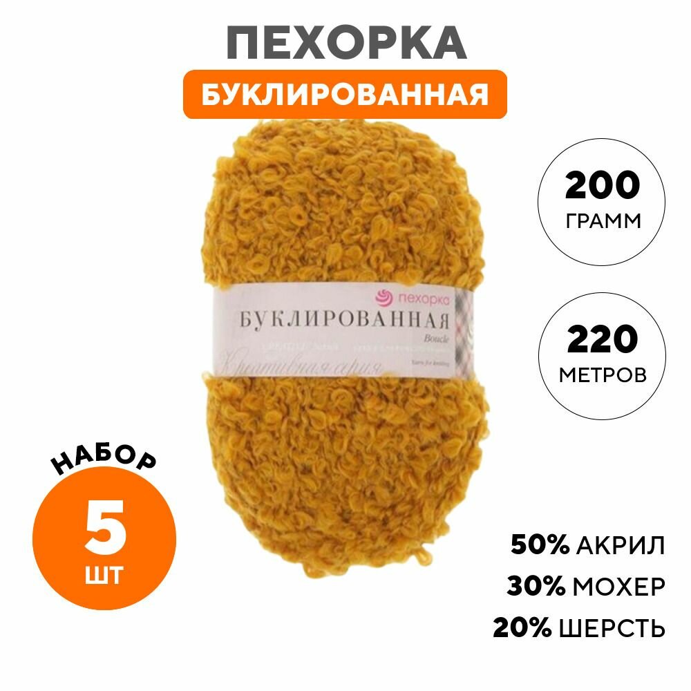 Пряжа Пехорка Буклированная цвет 447 горчица (200г/220м, упаковка 5 мотков)