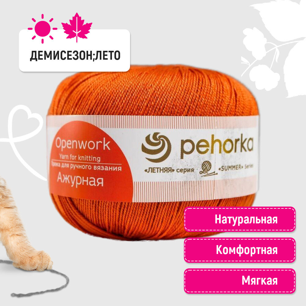 СохранитьПряжа для вязания Пехорка 'Ажурная', 50г, 280м (100% мерсеризованный хлопок) (194-Рыжик), 10 мотков интересное:
