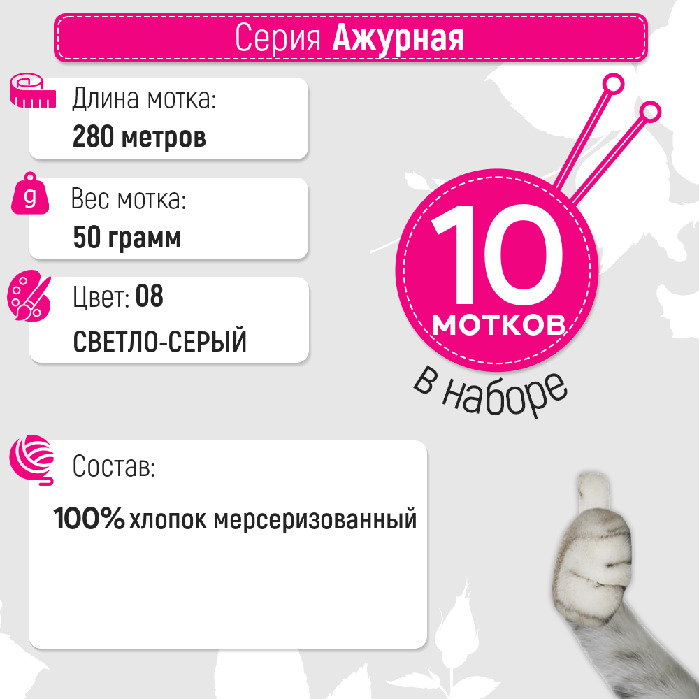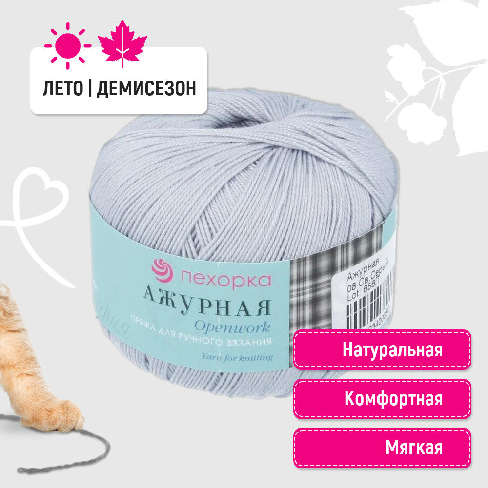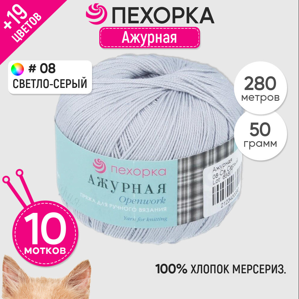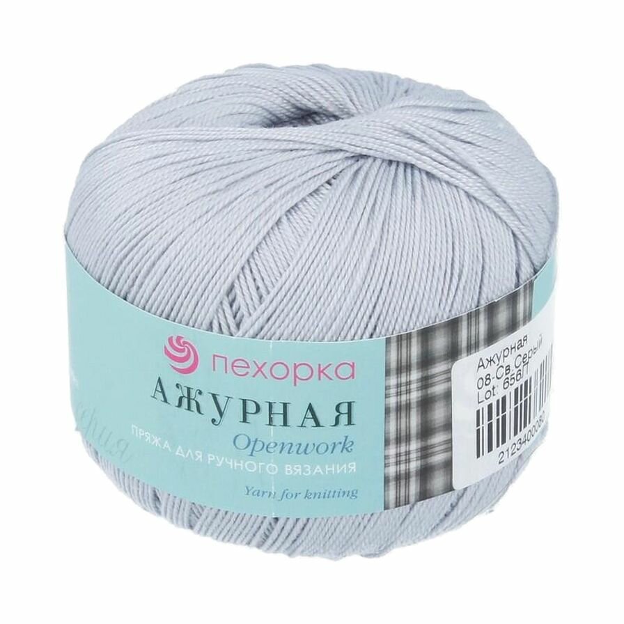 Пряжа для вязания Пехорка "Ажурная" 10 шт, Светло-серый №08