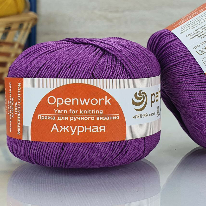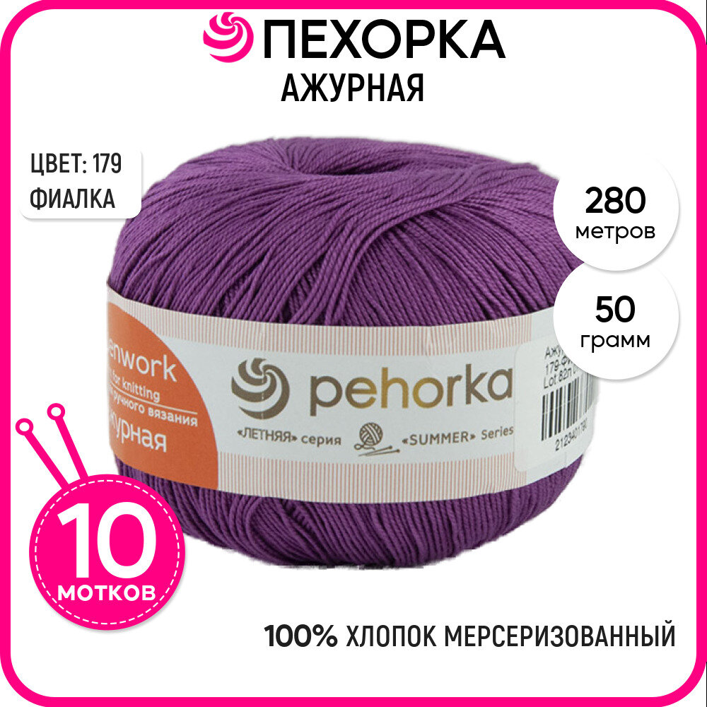 Пряжа Ажурная (Пехорка), Фиалка - 179, 100% мерсеризованный хлопок, 10 мотков, 50 г, 280 м.