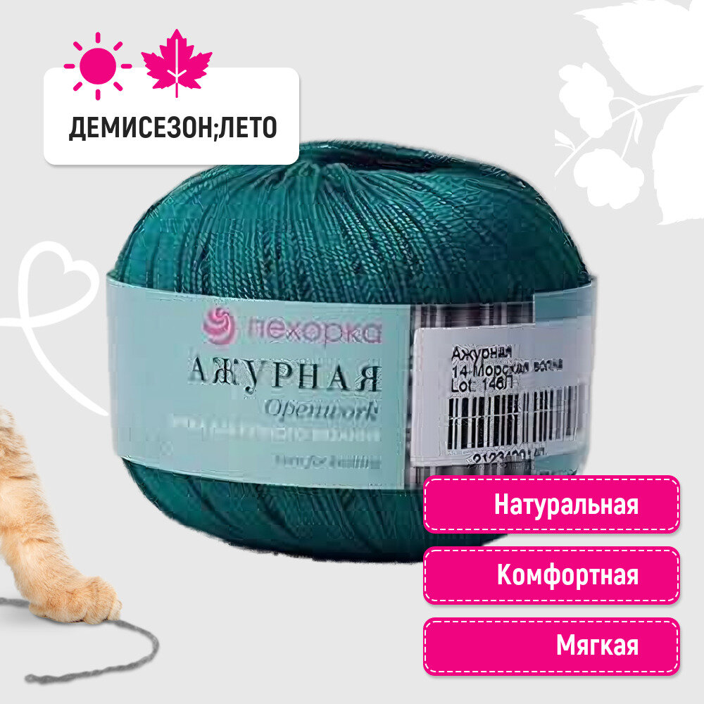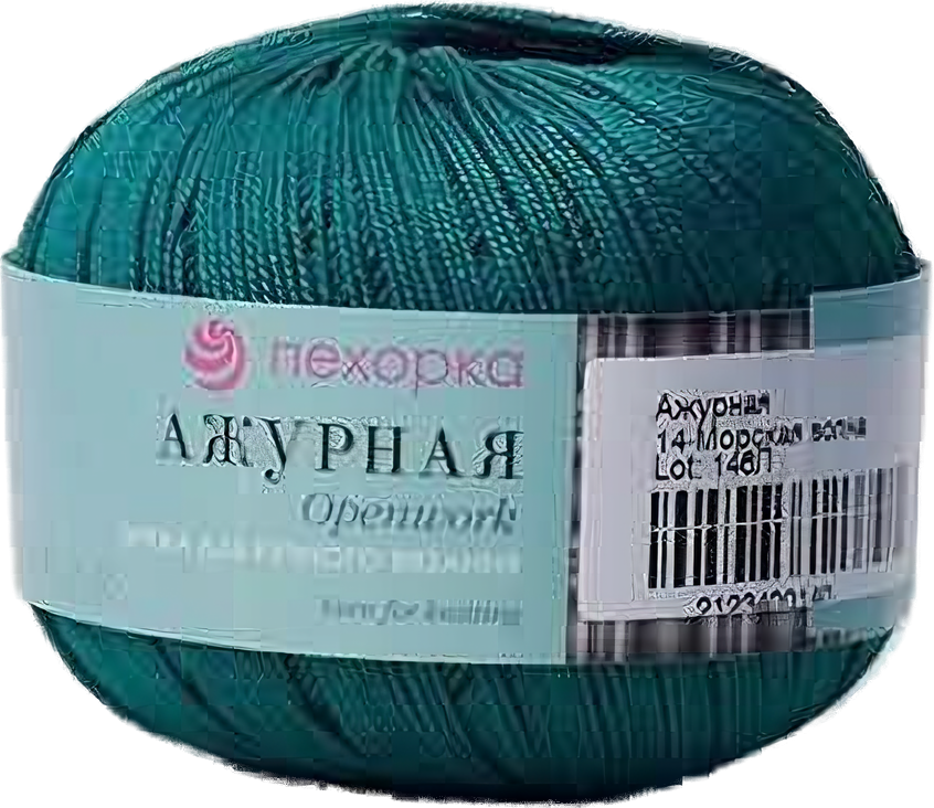 СохранитьПряжа Пехорская ПТ "Ажурная" 100% мерсеризованный хлопок 10 шт.х50г 280м №014 морская волна интересное: