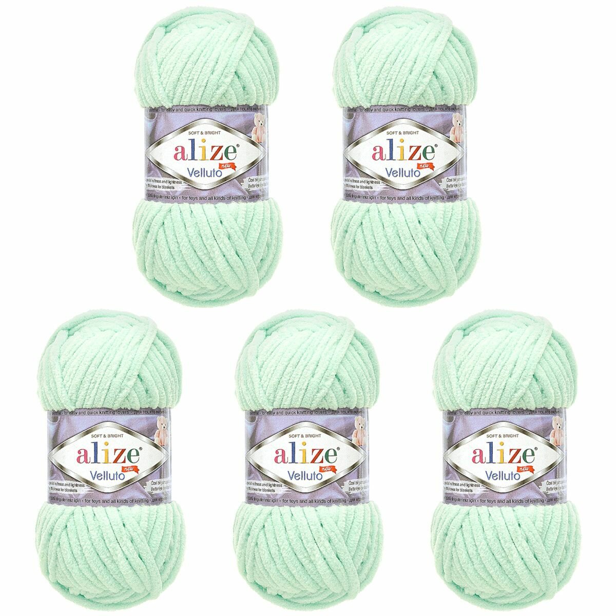 Пряжа Alize Velluto мята (464), 100%микрополиэстер, 68м, 100г, 5шт