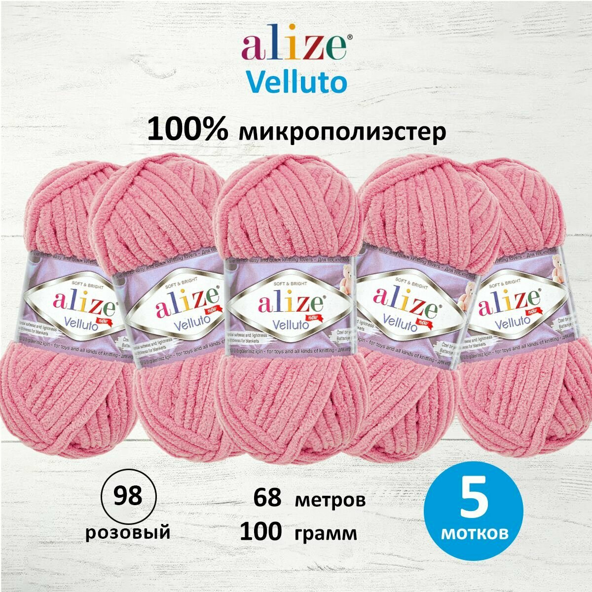 Купить Пряжа Alize Velluto сухая роза (98), 100%микрополиэстер, 68м, 100г, 5шт
