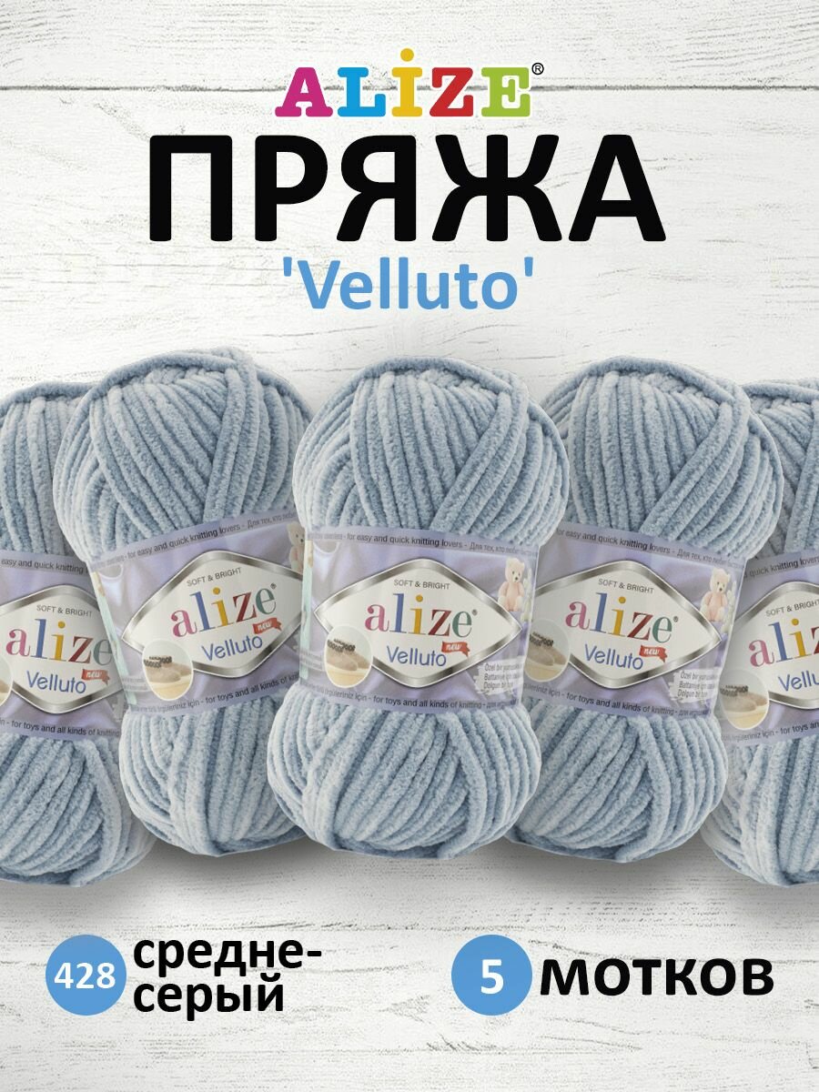 Пряжа VELLUTO (Alize), Серый - 428, 100% микрополиэстер, 5 мотков, 100 г, 68 м.