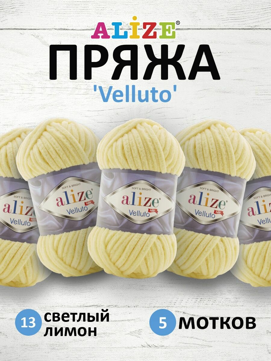 Купить Пряжа Alize Velluto светлый лимон (13), 100%микрополиэстер, 68м, 100г, 5шт