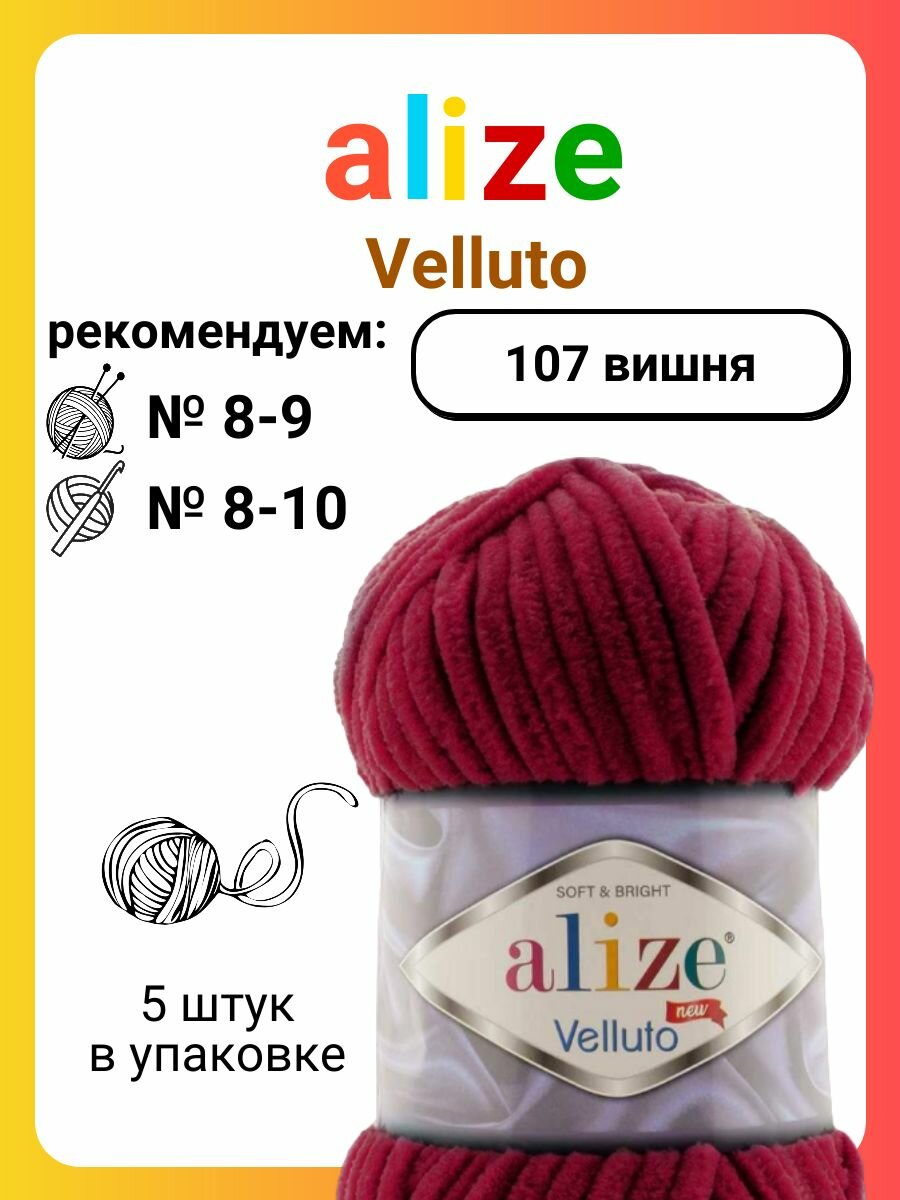 Купить Пряжа Alize Velluto вишневый (107), 100%микрополиэстер, 68м, 100г, 5шт