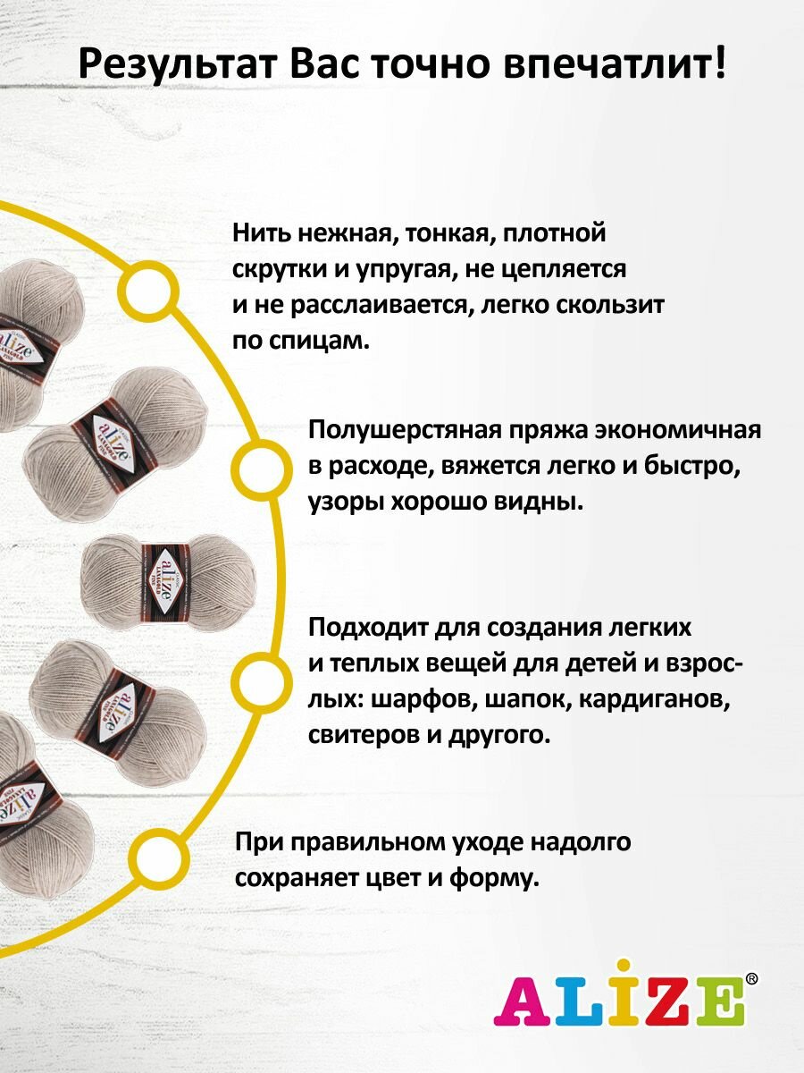СохранитьПряжа для вязания Alize Lanagold Fine (152) бежевый меланж, 100 г, 390 м, 5 штук интересное: