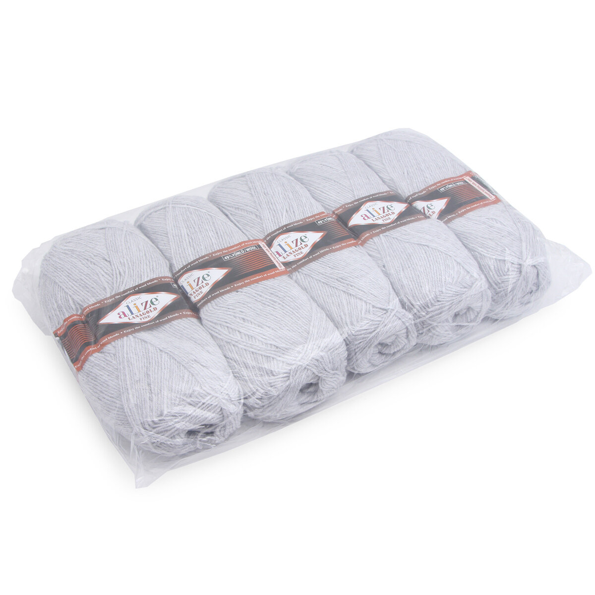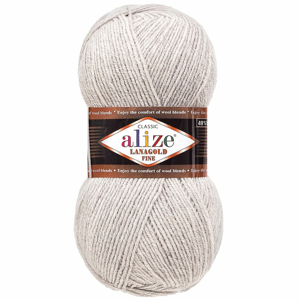 Пряжа для вязания ALIZE LANAGOLD FINE: 200 (светло-серый), 3 шт 390 м 100 г, 49% шерсть 51% акрил