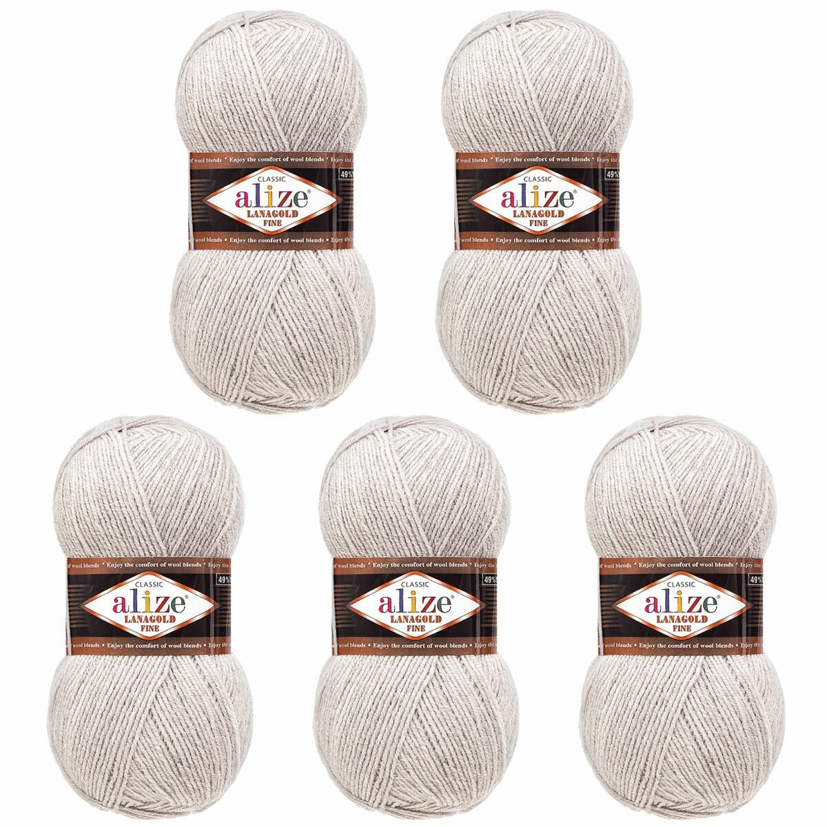 Пряжа ALIZE LANAGOLD FINE, джисовый - 203, 49% шерсть, 51% акрил, 5 мотков, 100 г, 390 м.