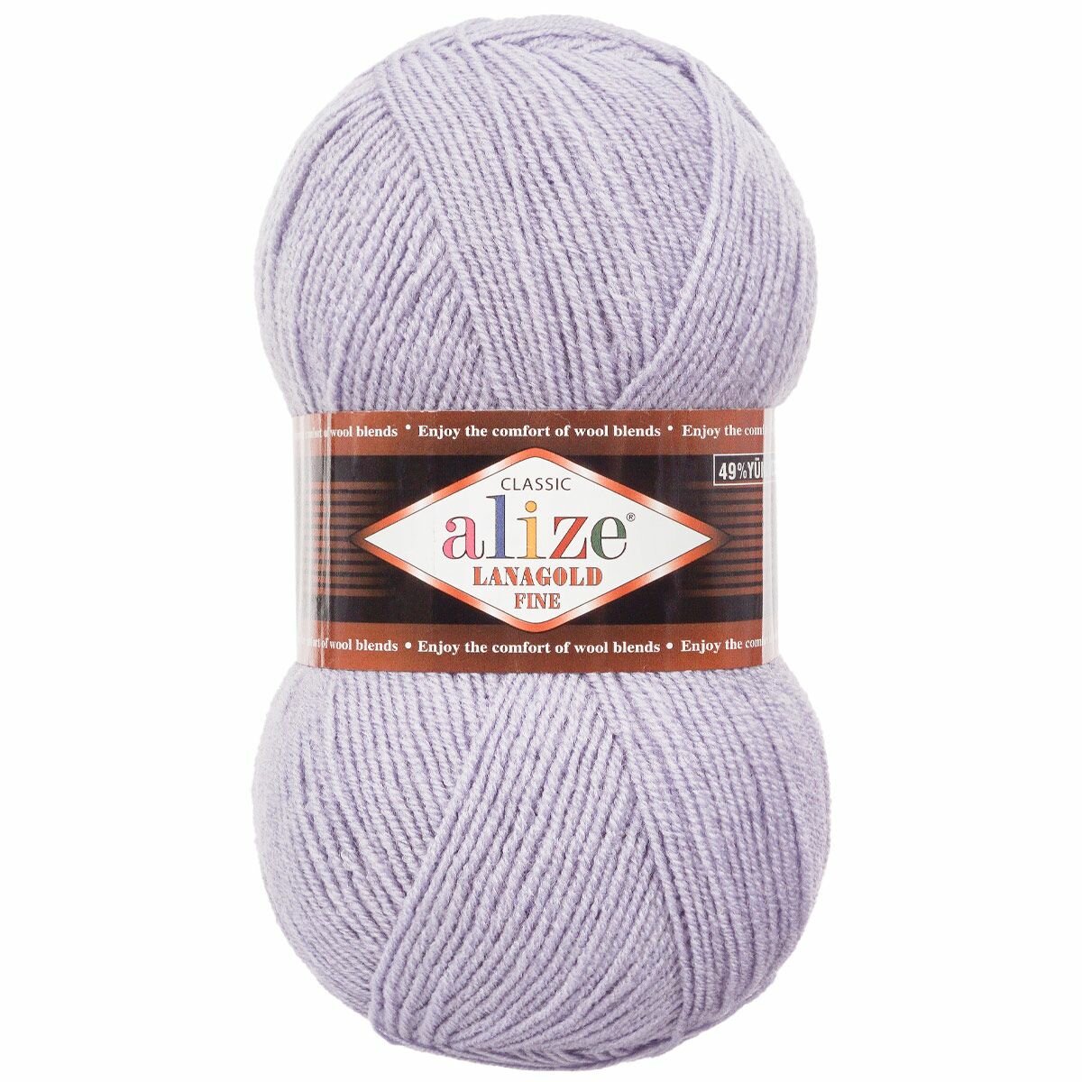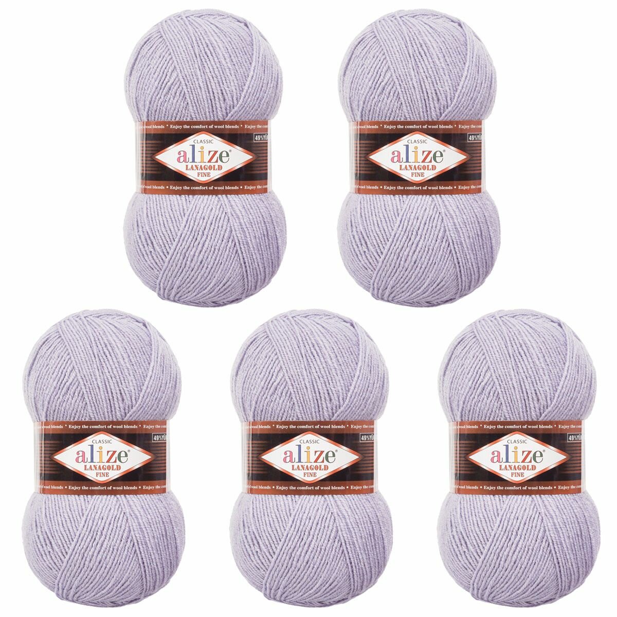 Пряжа для вязания ALIZE LANAGOLD FINE: 505 (пепельно-сиреневый), 5 шт 390 м 100 г, 49% шерсть 51% акрил