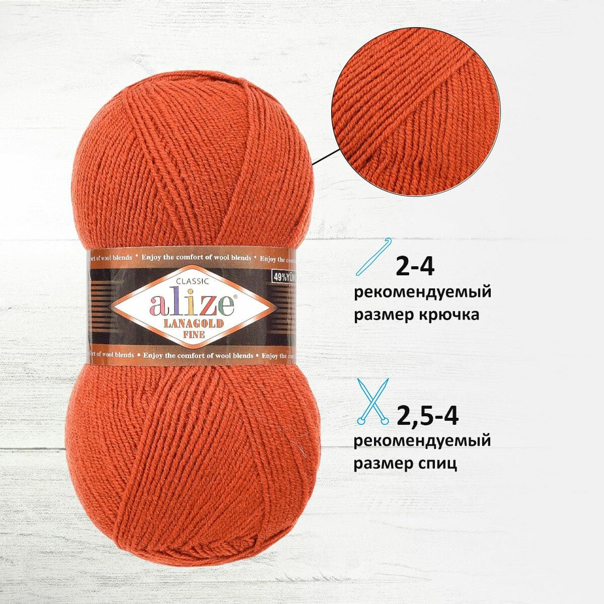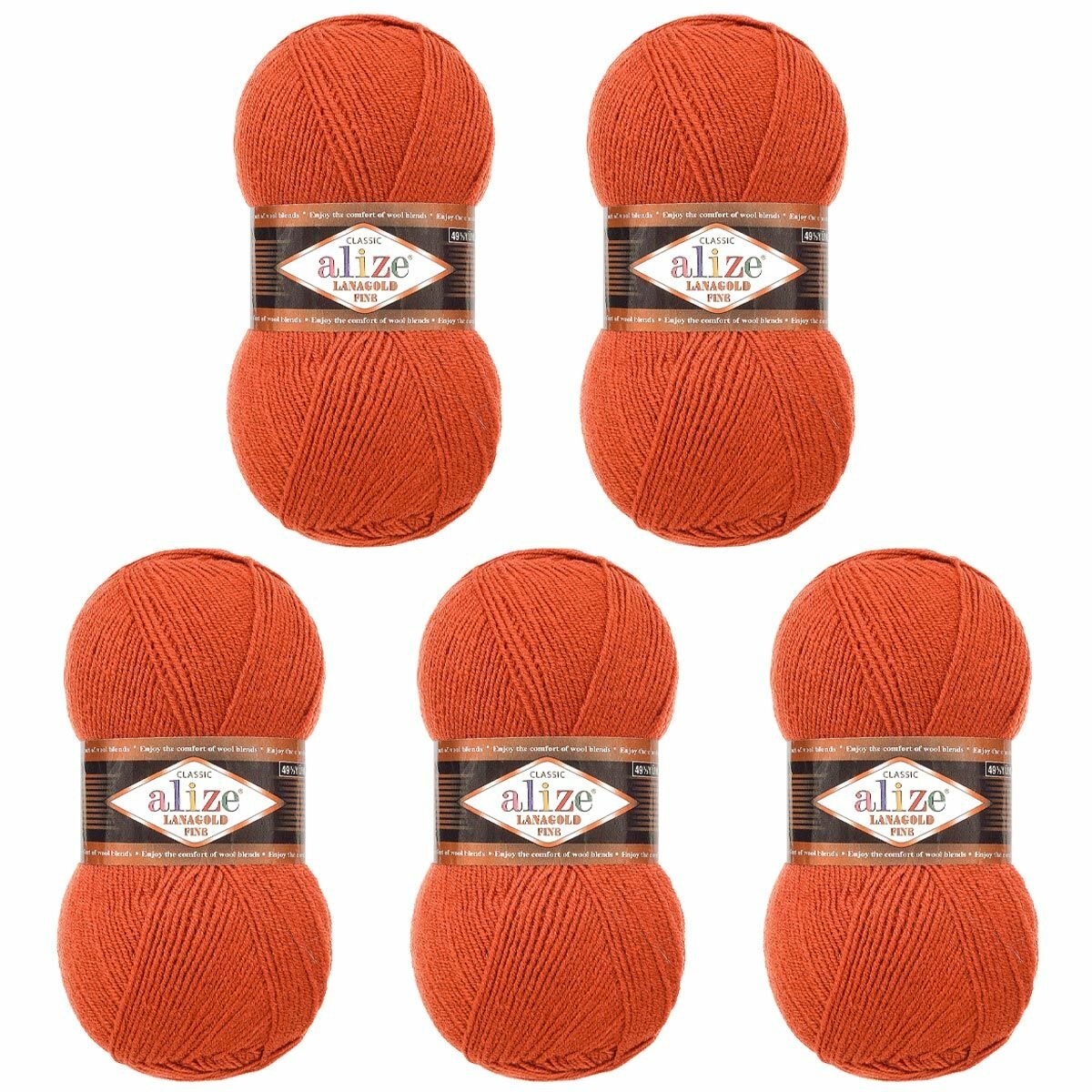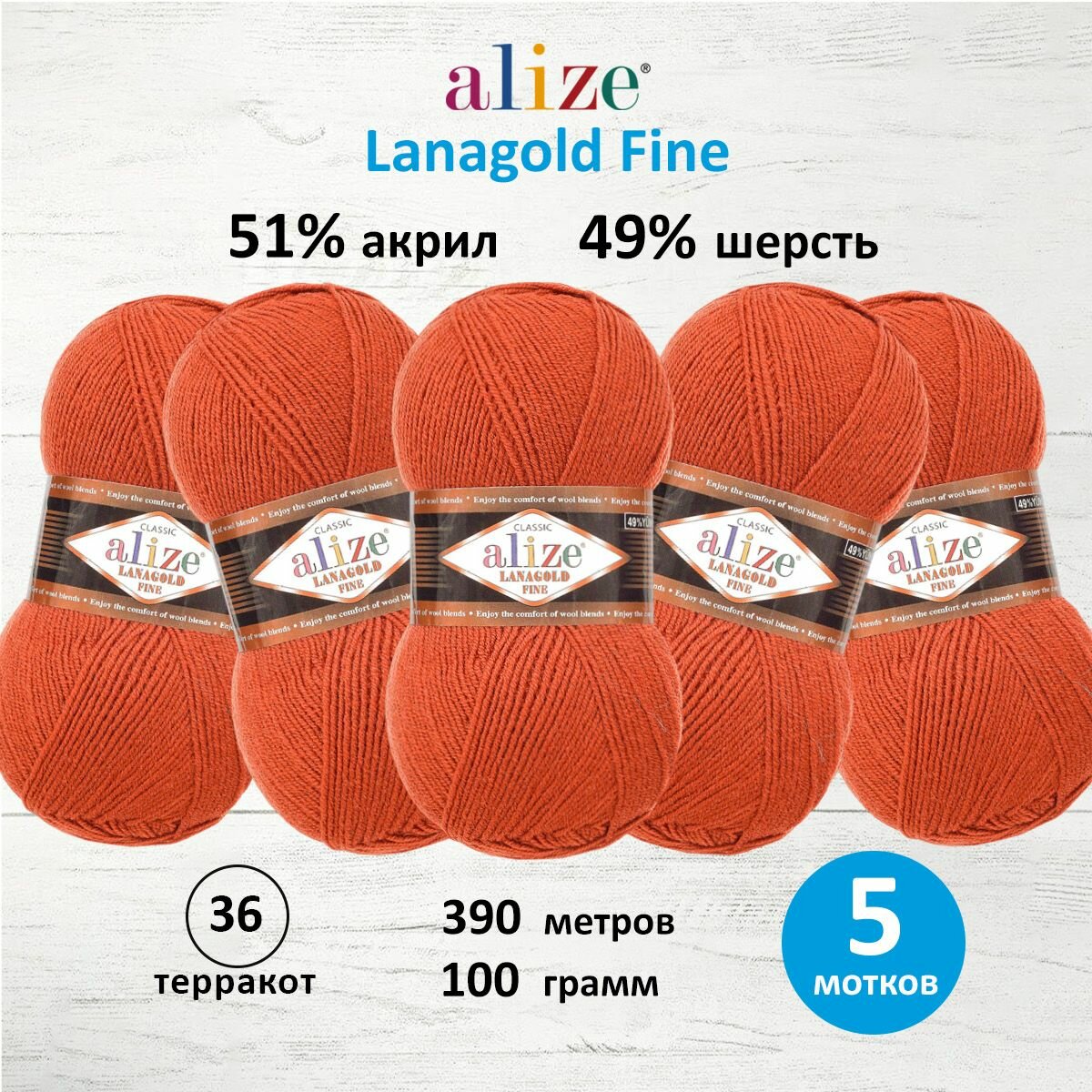 Пряжа Alize Lanagold Fine (Ализе Ланаголд Файн) - 5 мотков, 36 терракот, 49% шерсть, 51% акрил 390м/100г