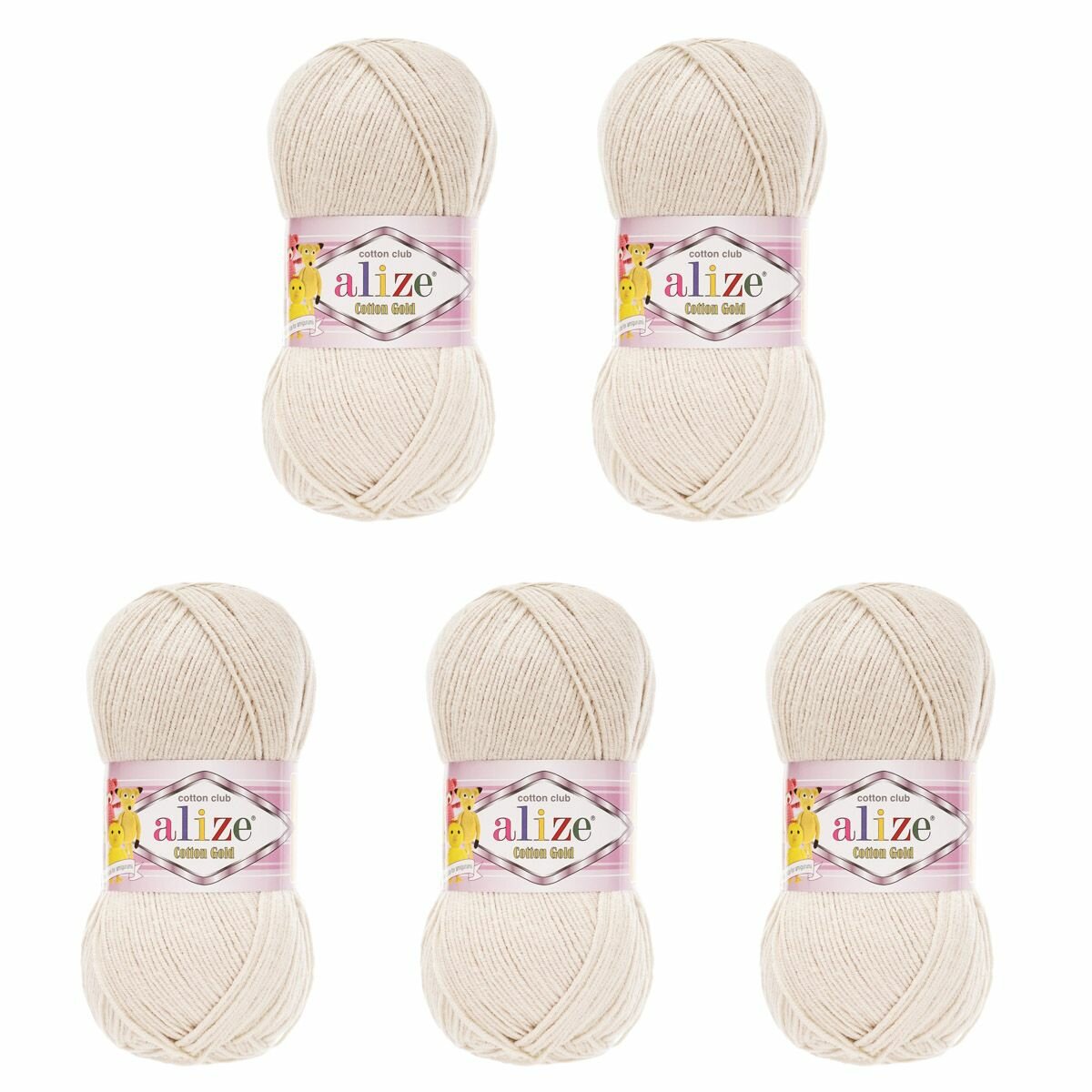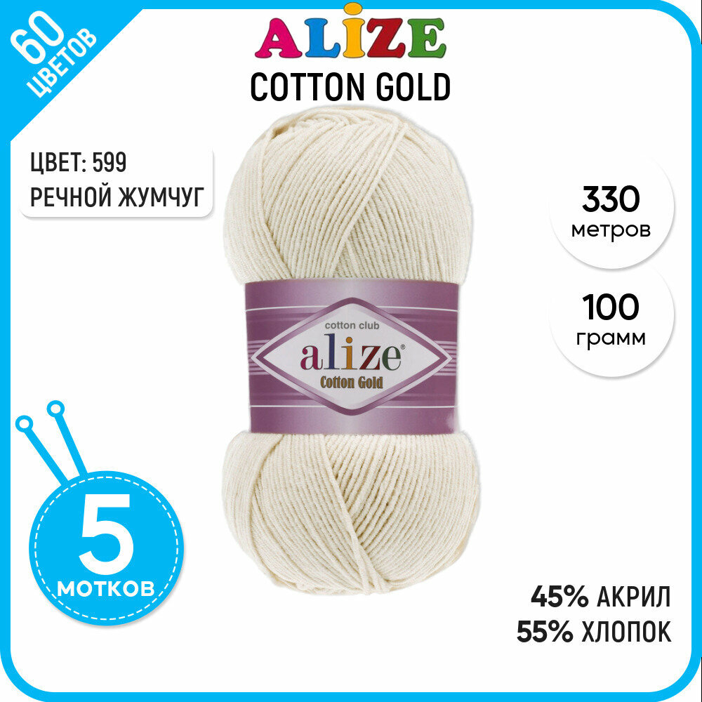 Купить Пряжа Alize Cotton Gold слоновая кость (599), 55%хлопок/45%акрил, 330м, 100г, 5шт