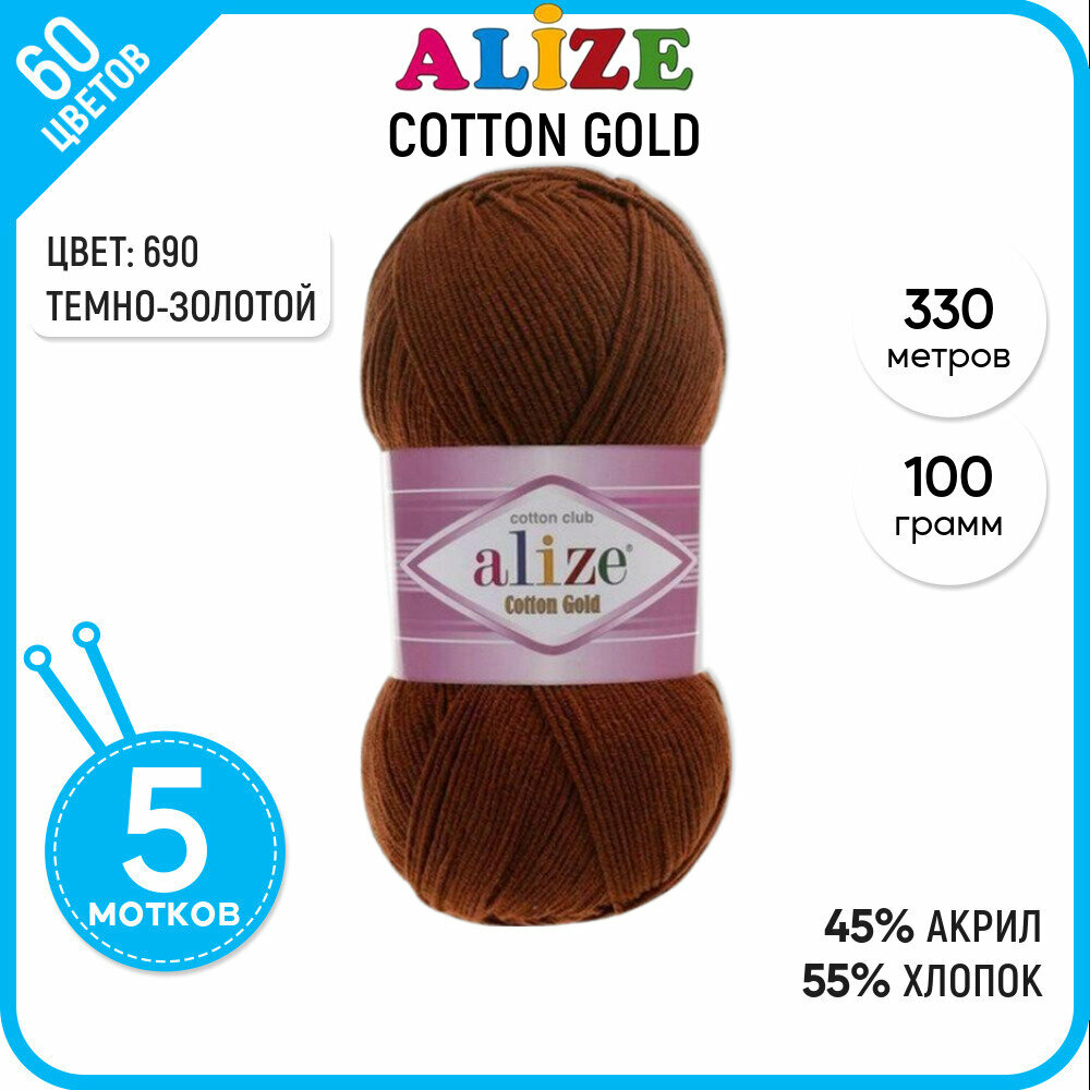 Купить Пряжа Alize Cotton Gold рыже-коричневый (690), 55%хлопок/45%акрил, 330м, 100г, 5шт