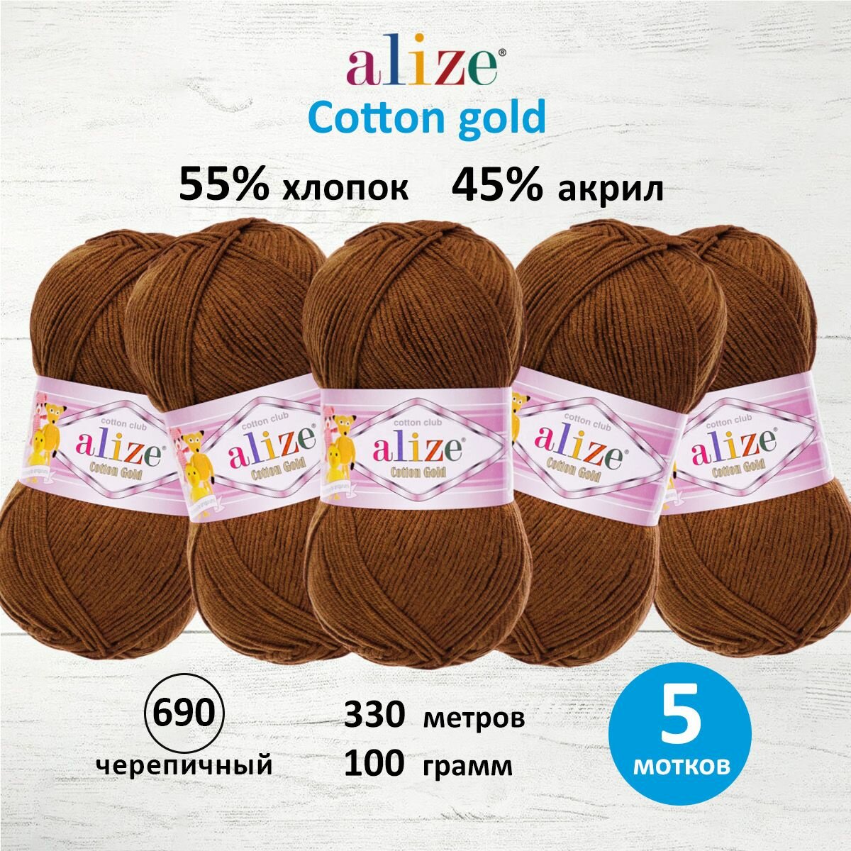 Пряжа Alize Cotton Gold (Ализе Коттон Голд) - 5 мотков 690 черепичный 55% хлопок, 45% акрил 330м/100г