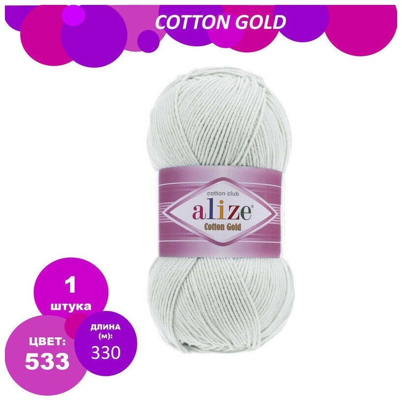 Купить Пряжа Alize Cotton Gold пастельно-серый (533), 55%хлопок/45%акрил, 330м, 100г, 1шт