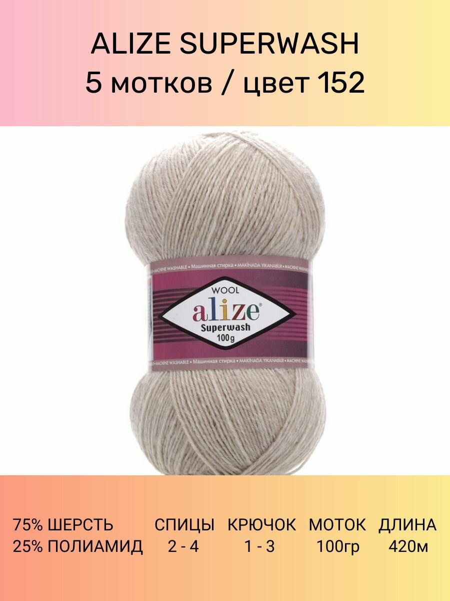 Купить Пряжа Alize Superlana Tig бежевый/меланж (152), 25%шерсть/75%акрил, 570м, 100г, 5шт