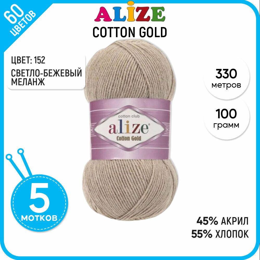 Пряжа для вязания ALIZE 'Cotton gold', 100г, 330м (55% хлопок, 45% акрил), ТУ (599 каменный), 5 мотков