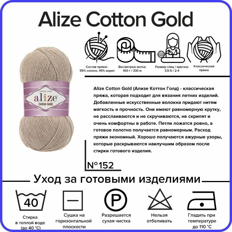 Пряжа Alize Cotton Gold светло-бежевый (67), 55%хлопок/45%акрил, 330м, 100г, 1шт