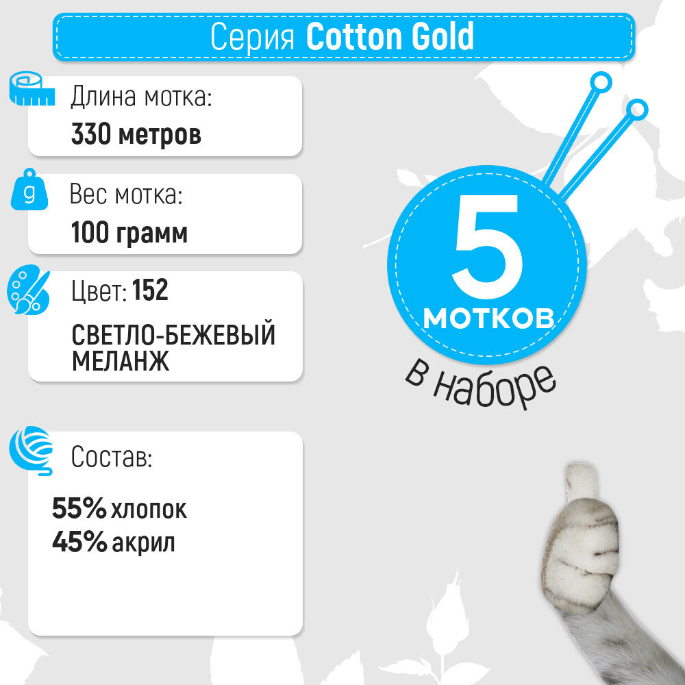 Пряжа Хлопок голд (Cotton gold) упаковка 5 мотков 100 г, 330 м. 55% хлопок 45% акрил цвет 458 камень