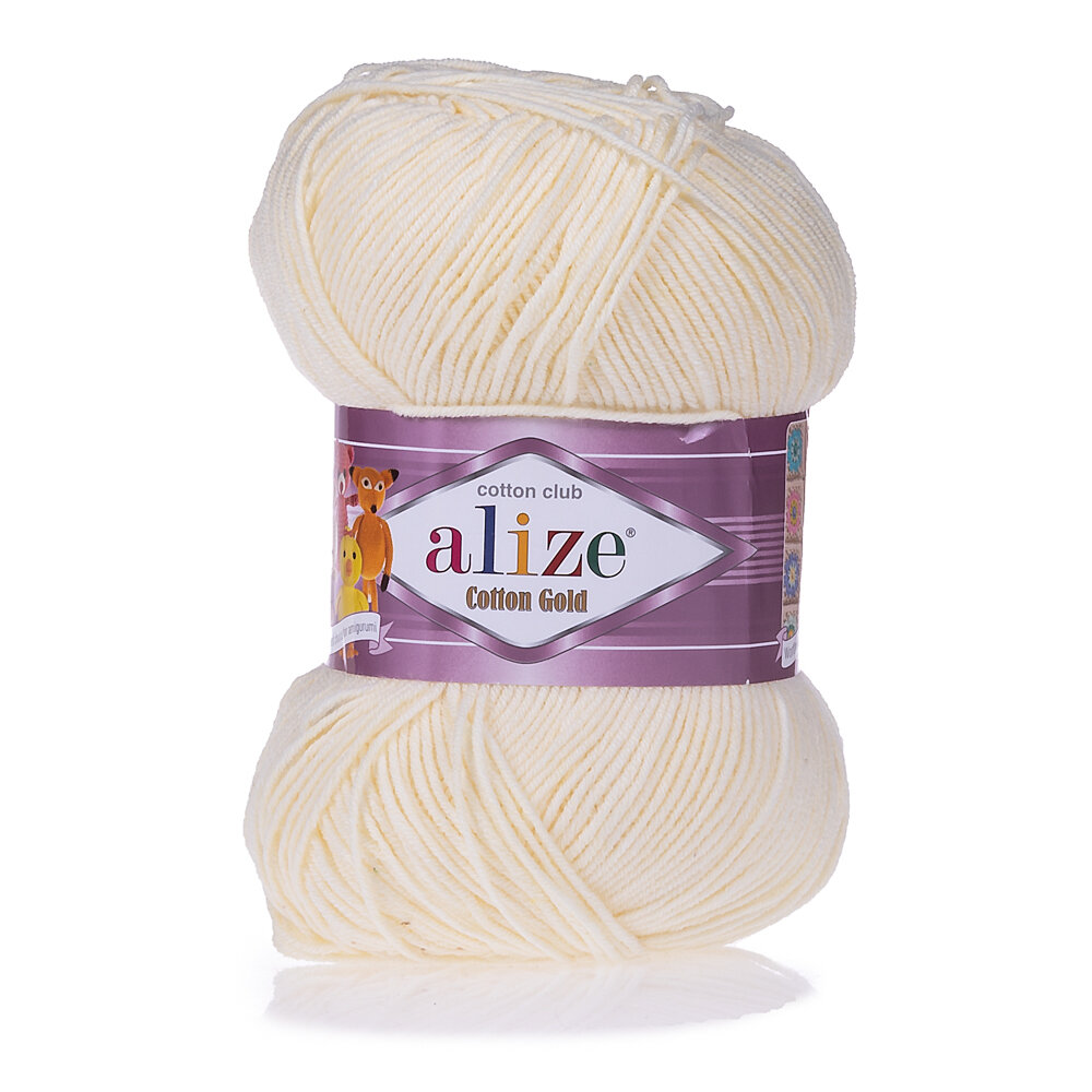Пряжа Alize Cotton Gold (Ализе Коттон Голд) - 1 моток 62 светло-молочный 55% хлопок, 45% акрил 330м/100г