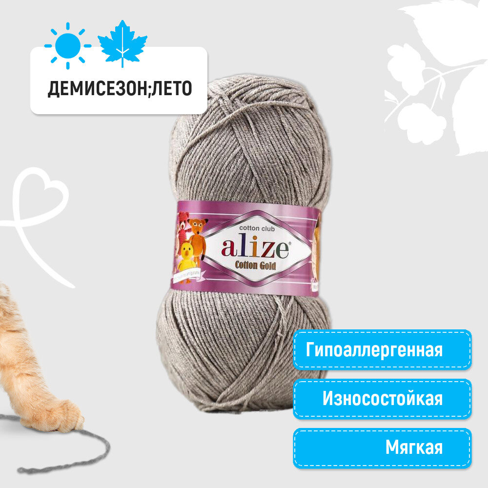 Пряжа ALIZE 'Cotton gold' 100гр. 330м. (55% хлопок, 45% акрил) ТУ (827 св. серо-коричневый)