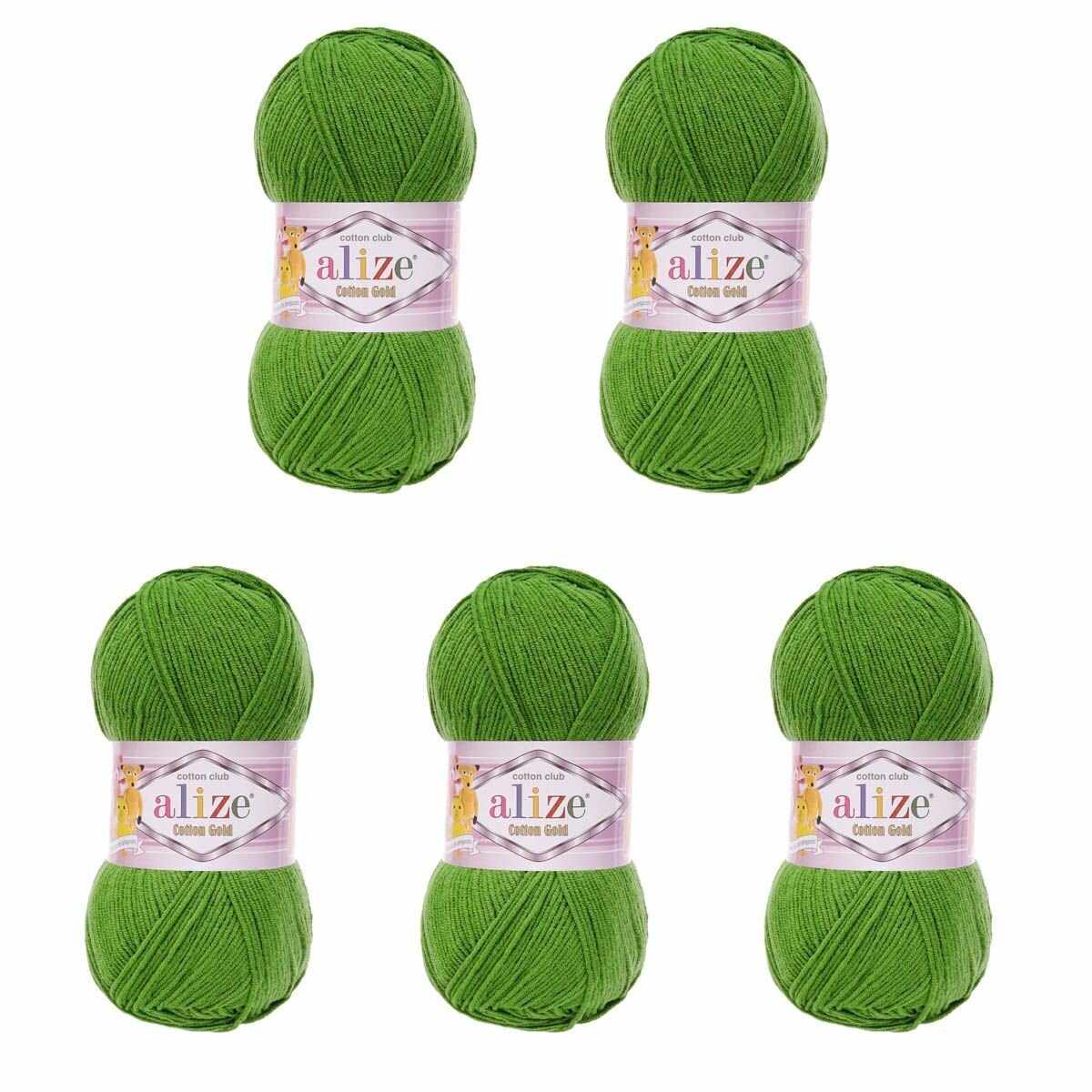Пряжа Alize Cotton Gold (Ализе Коттон Голд) - 5 мотков 126 зеленая трава 55% хлопок, 45% акрил 330м/100г