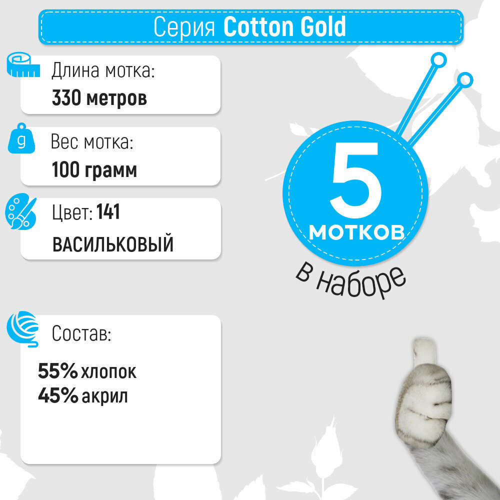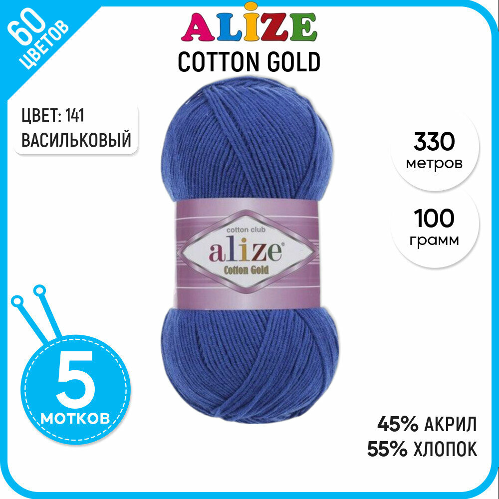 Купить Пряжа Alize Cotton Gold василек (141), 55%хлопок/45%акрил, 330м, 100г, 5шт