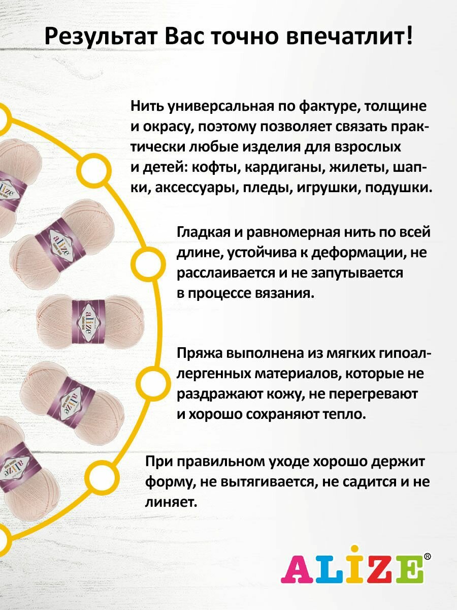 СохранитьПряжа Alize Cotton Gold (Ализе Коттон Голд) - 5 мотков 382 телесный 55% хлопок, 45% акрил 330м/100г интересное: