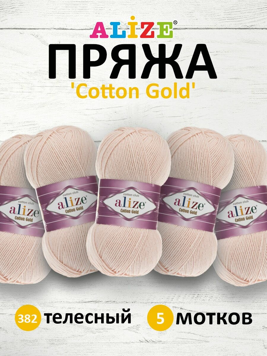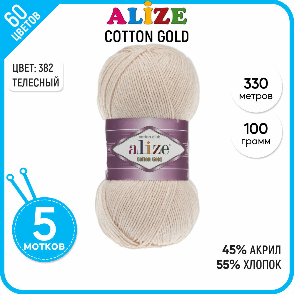 Пряжа Alize Cotton Gold (382 телесный), 5 шт. по 100 г, Alize