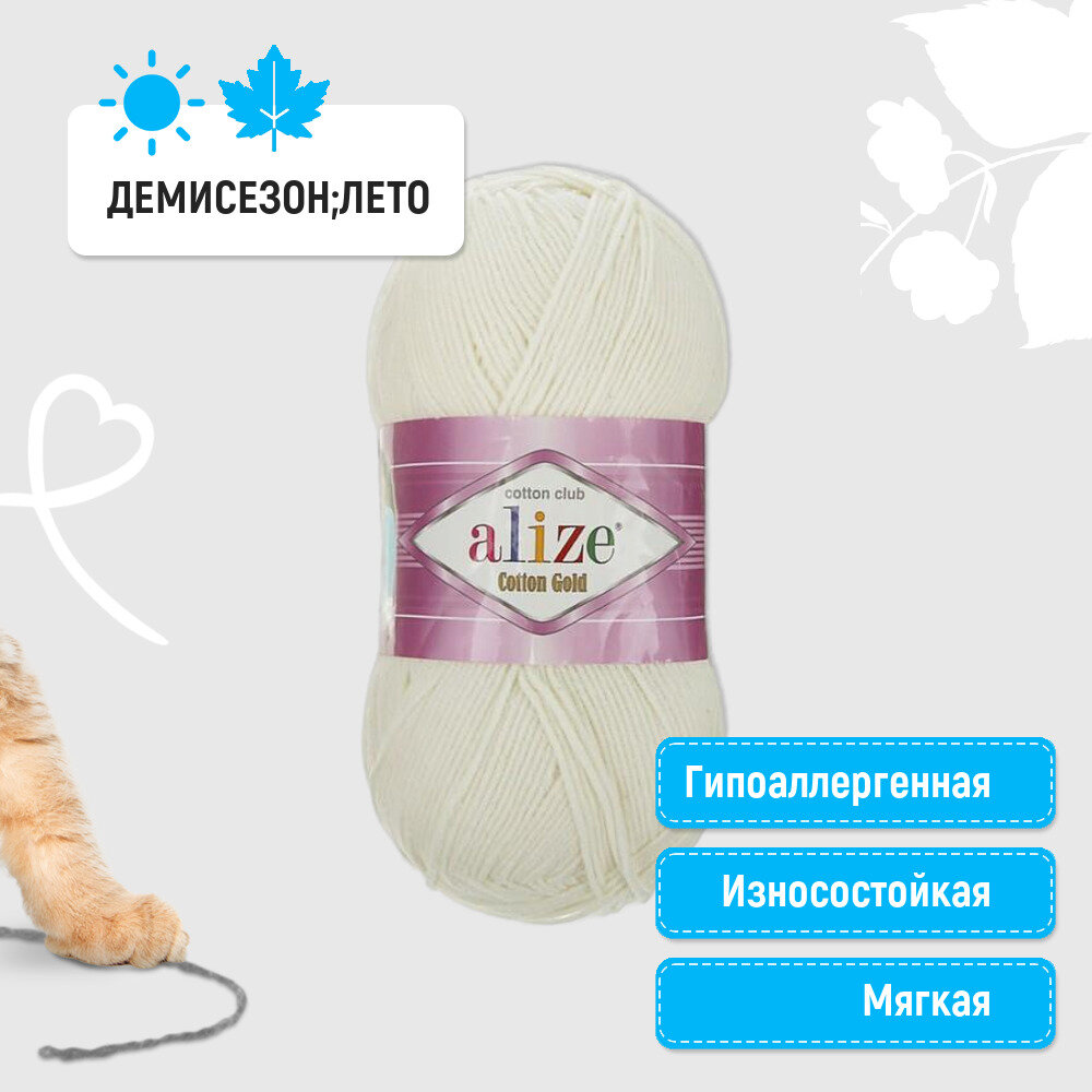 Купить Пряжа для вязания ALIZE 'Cotton gold', 100г, 330м (55% хлопок, 45% акрил), ТУ (62 молочный), 5 мотков