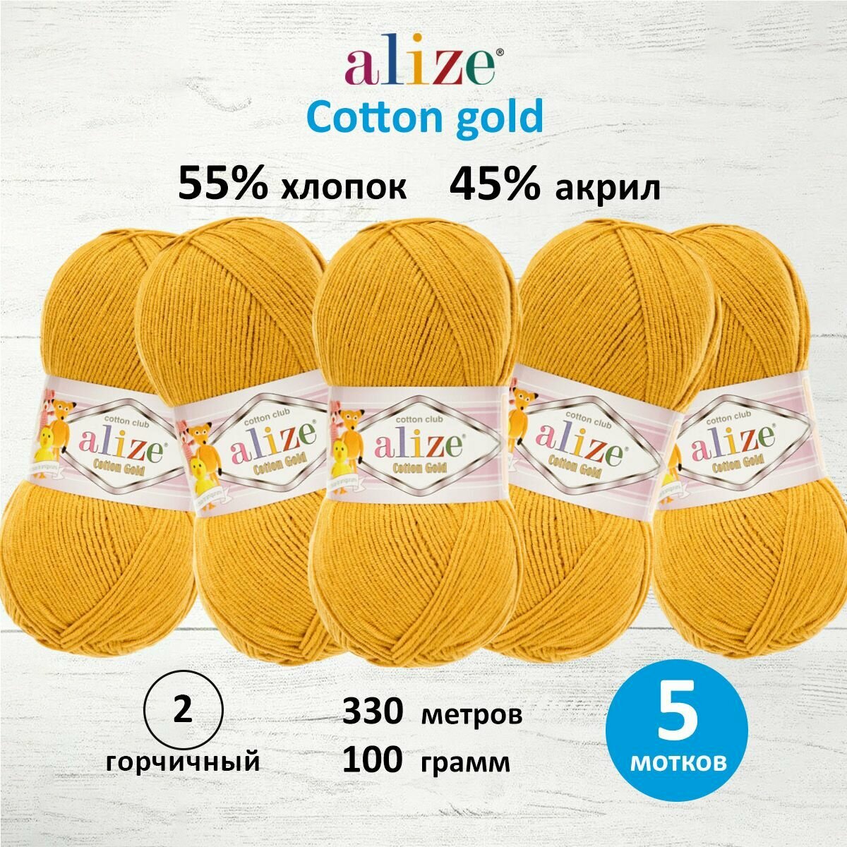 Пряжа Alize Cotton Gold (02 горчичный), 5 шт. по 100 г, Alize