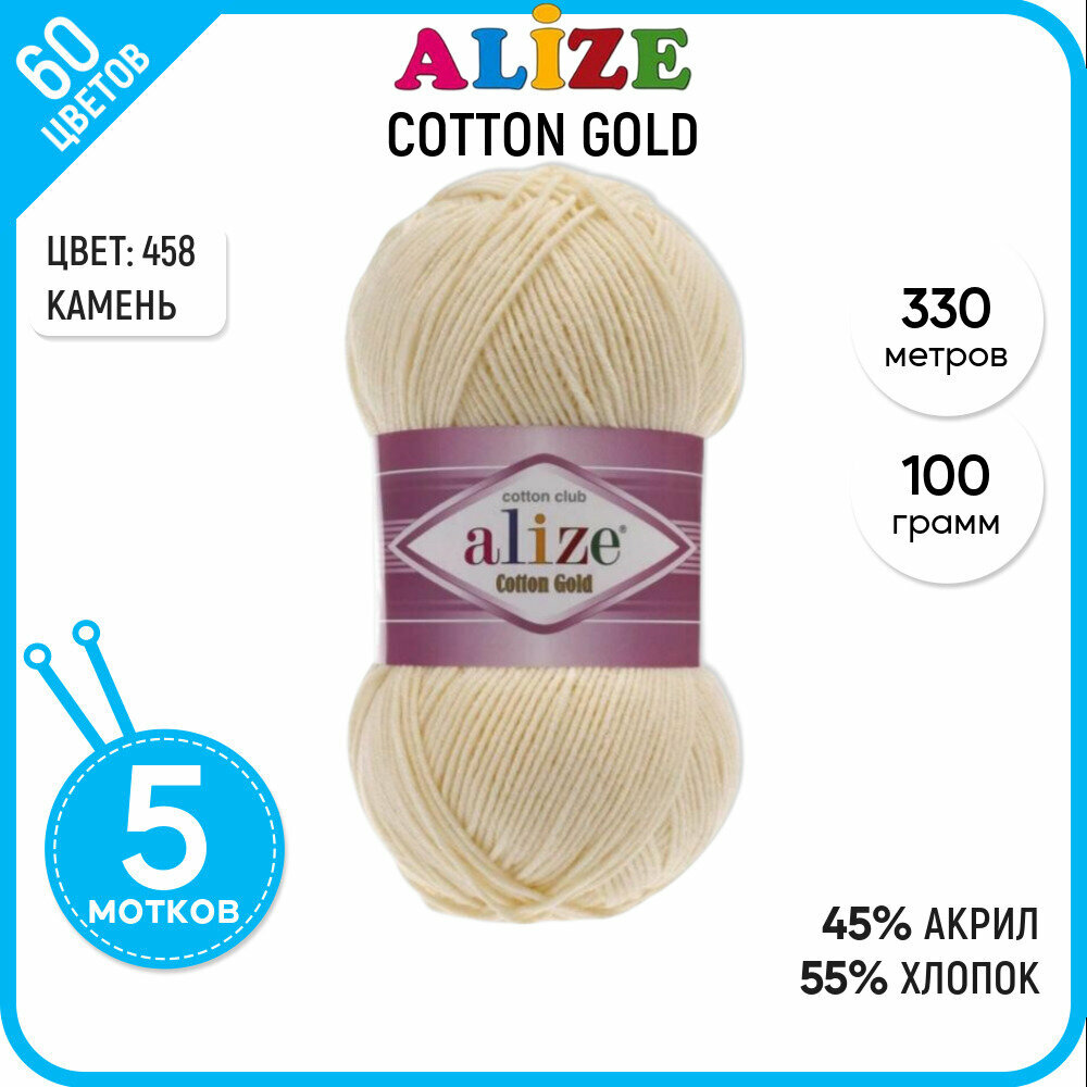 Купить Пряжа Alize Cotton Gold (Ализе Коттон Голд) - 5 мотков 458 камень 55% хлопок, 45% акрил 330м/100г